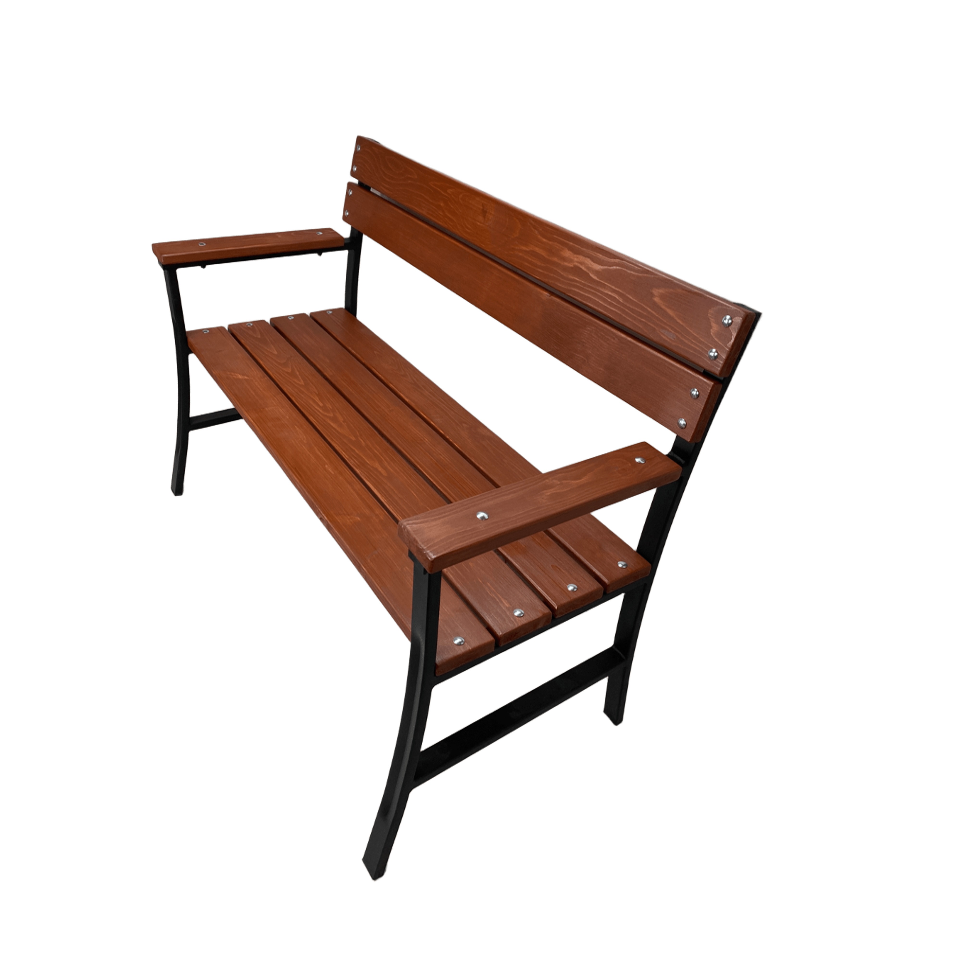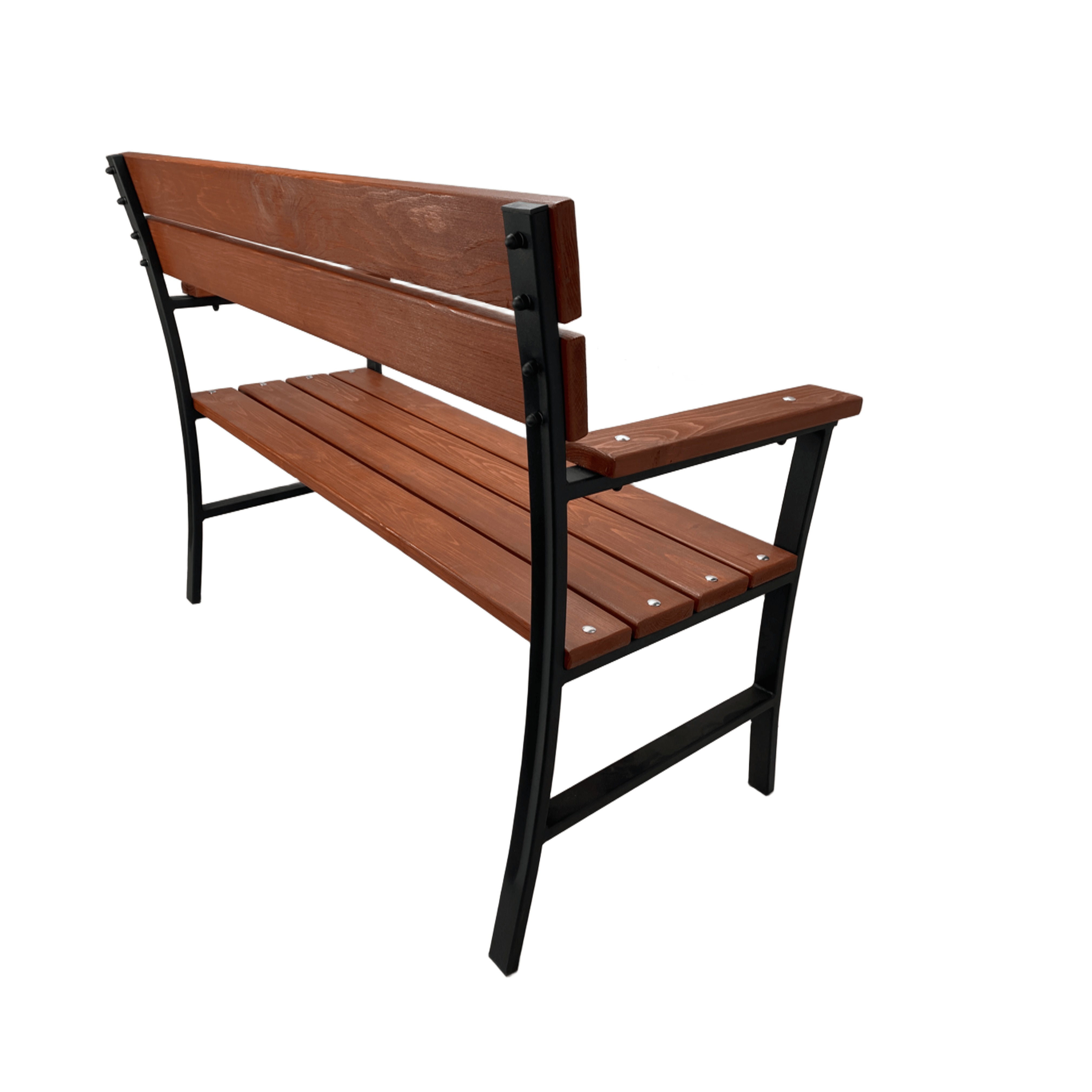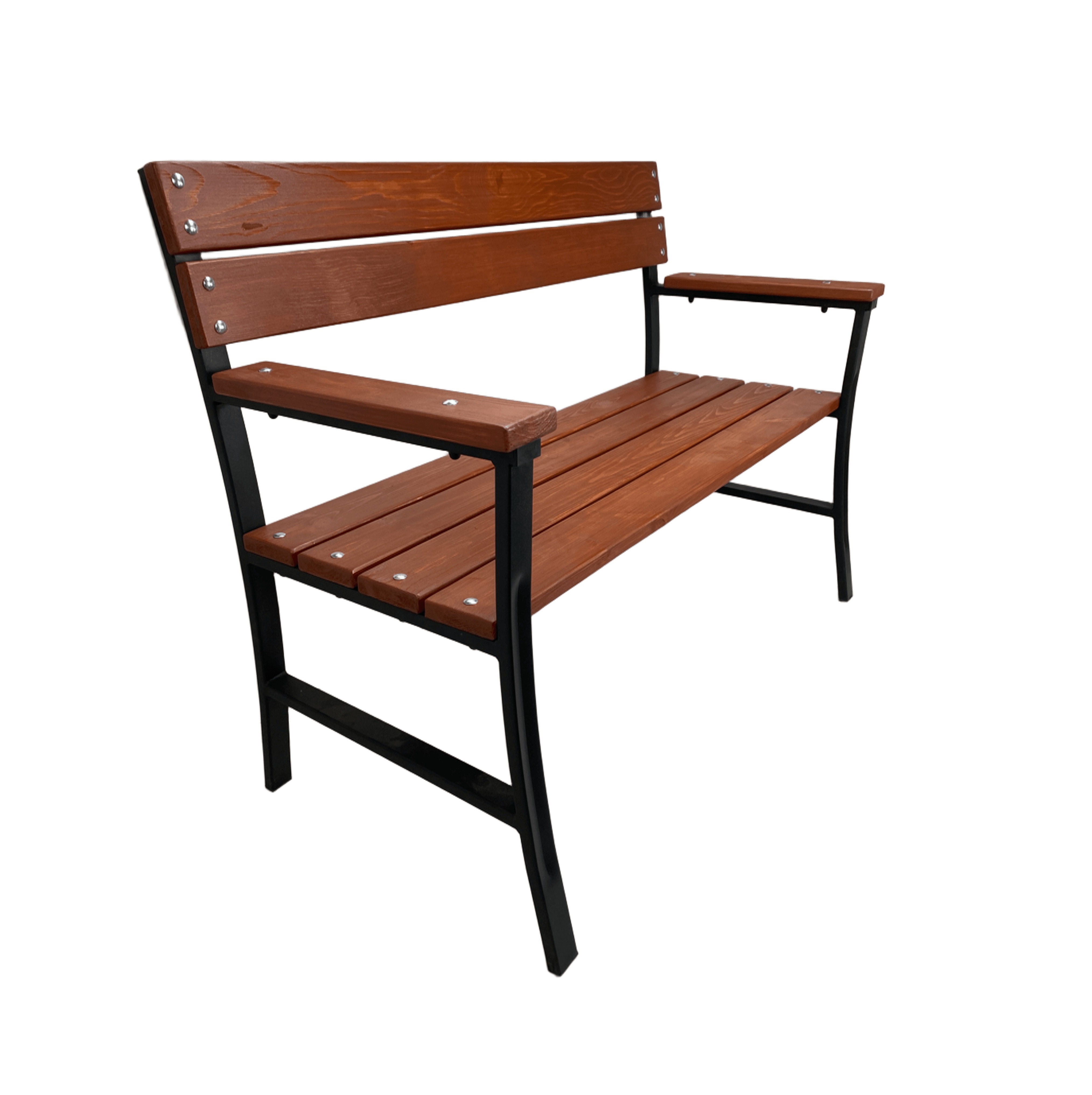 Стальной каркас обеспечивает необходимую прочность и устойчивость конструкции, гарантируя длительный срок службы даже при интенсивной эксплуатации. Черный цвет каркаса скамейки и оттенок махагон гармонично сочетаются между собой, создавая универсальный вид скамейки. Спинка лавки легко крепится к каркасу болтами и гайками. Поставляется в разобранном виде.