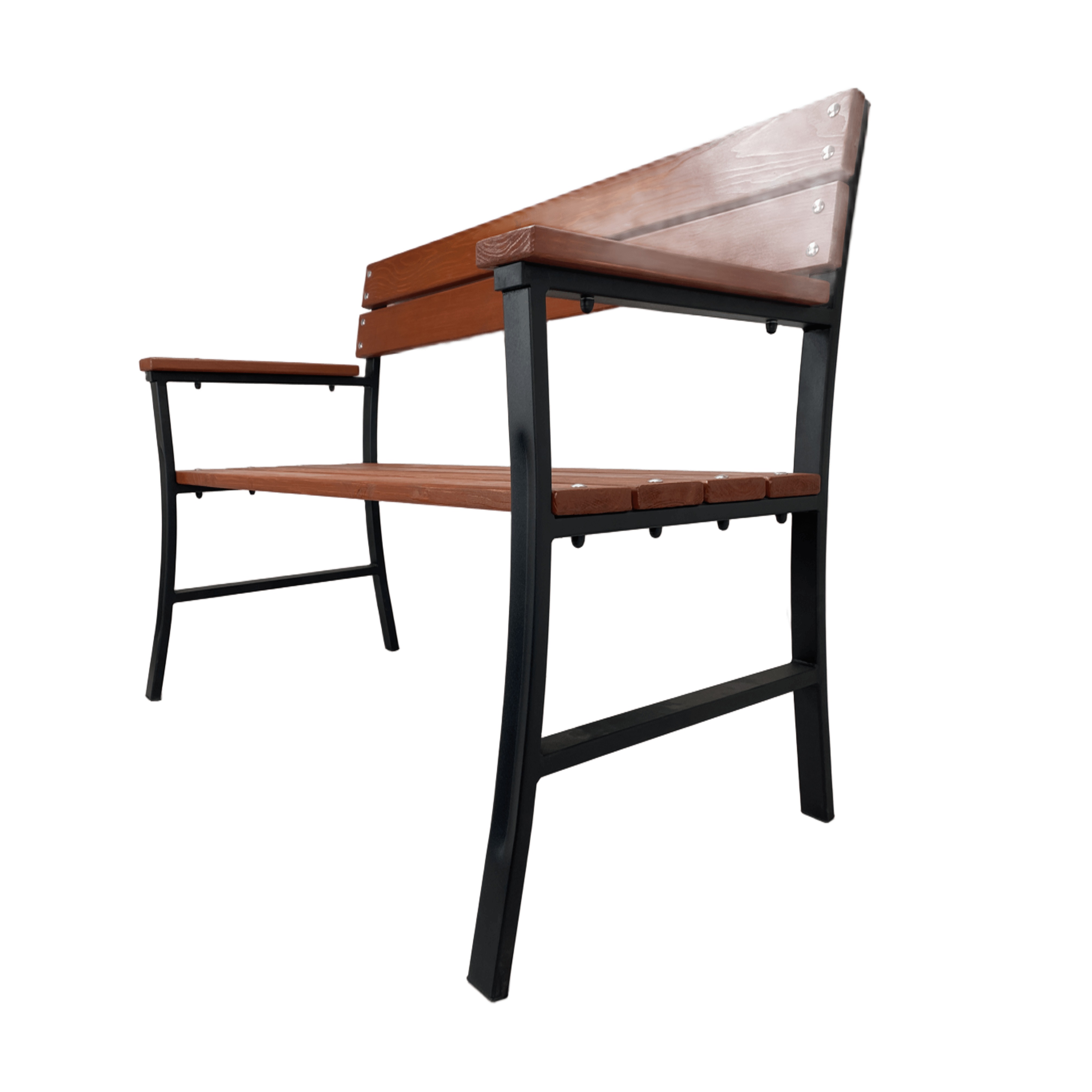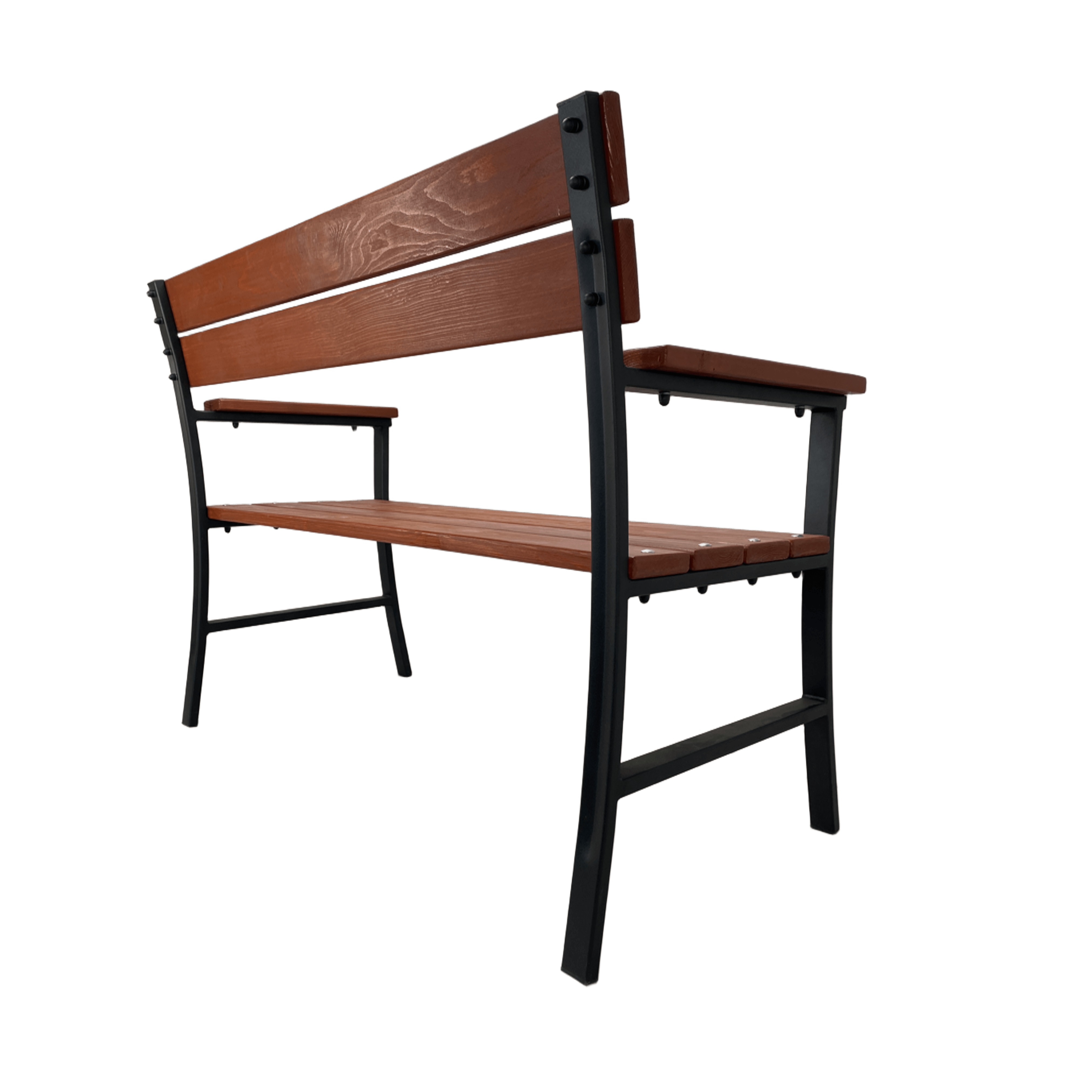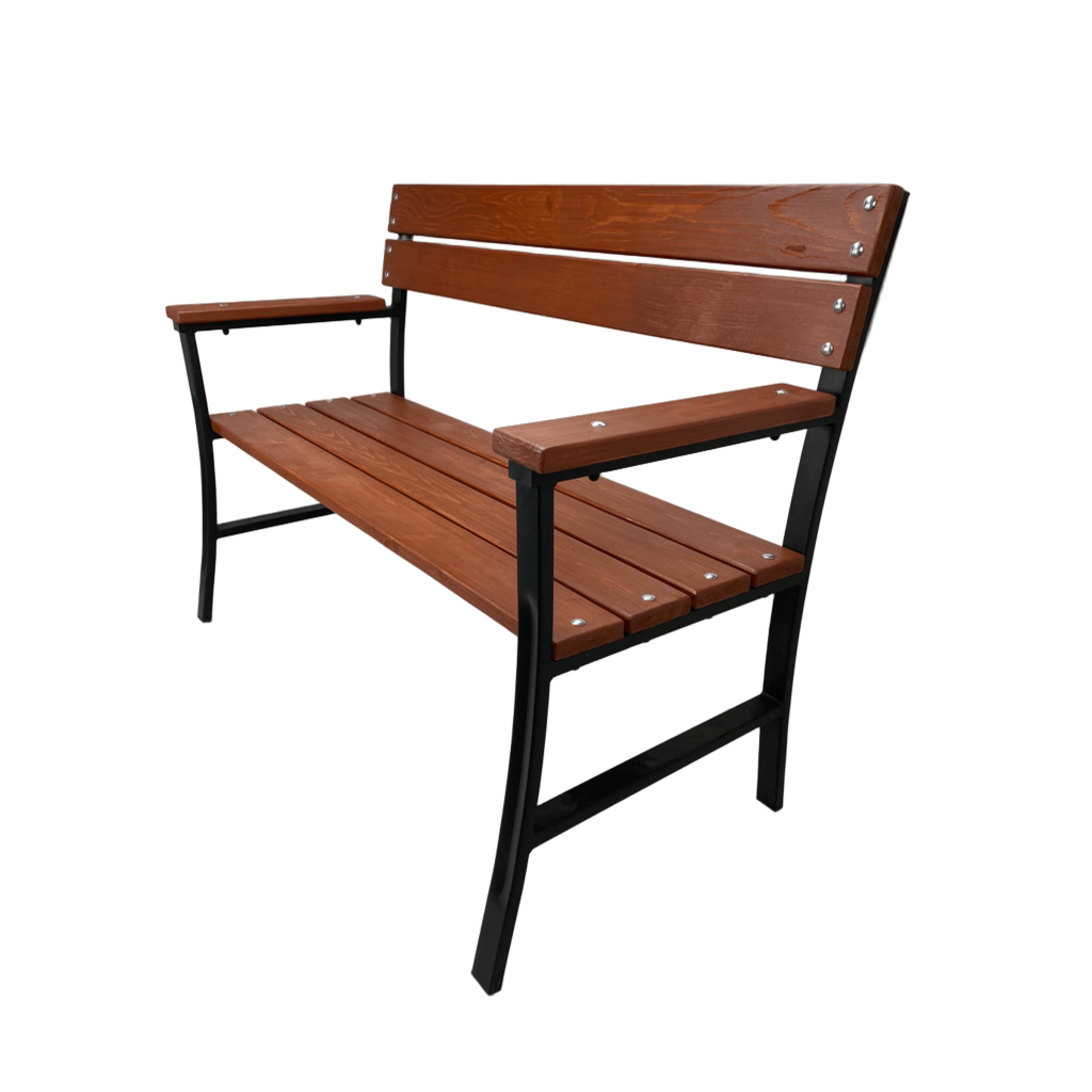 Стальной каркас обеспечивает необходимую прочность и устойчивость конструкции, гарантируя длительный срок службы даже при интенсивной эксплуатации. Черный цвет каркаса скамейки и оттенок махагон гармонично сочетаются между собой, создавая универсальный вид скамейки. Спинка лавки легко крепится к каркасу болтами и гайками. Поставляется в разобранном виде.