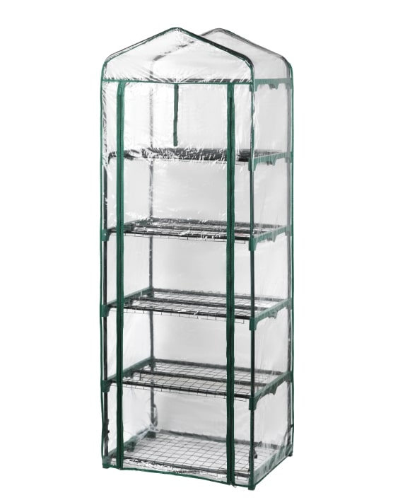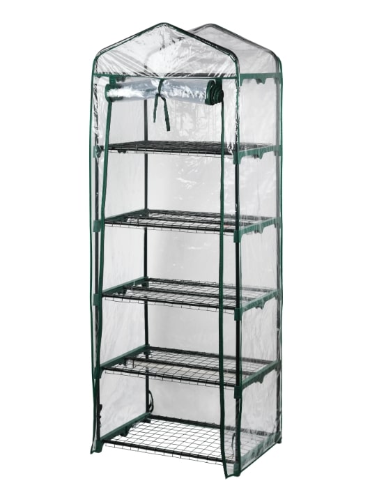 Теплица с фитосветильниками поместится на балконе, у окна или в любом другом месте квартиры. Её габариты: 640 х 490 х 1930 мм. Высота полок — 30 см, верхний ярус имеет небольшой купол и подходит для размещения более высоких растений. Качественный и надёжный металлокаркас дополняет прочный прозрачный кожух с удобной молнией. Кожух защищает растения от сквозняков, создаёт внутри теплицы необходимый для быстрого развития растений микроклимат. Благодаря молнии кожух легко открывается для проветривания, полива, замены ящиков или горшков. Теплица очень проста в сборке, не требует специального инструмента или особых навыков.