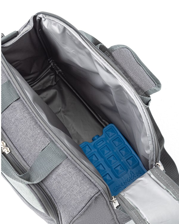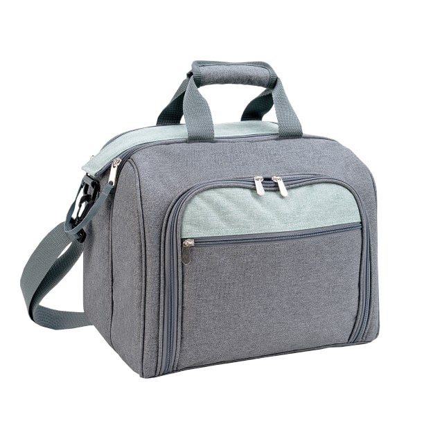 Изотермическая сумка – холодильник 11 л, набор посуды для пикника на 4 персоны 25 предметов: ножи, вилки, ложки, чашки, тарелки, солонка, перечница, штопор, нож для сыра/масла, разделочная доска.