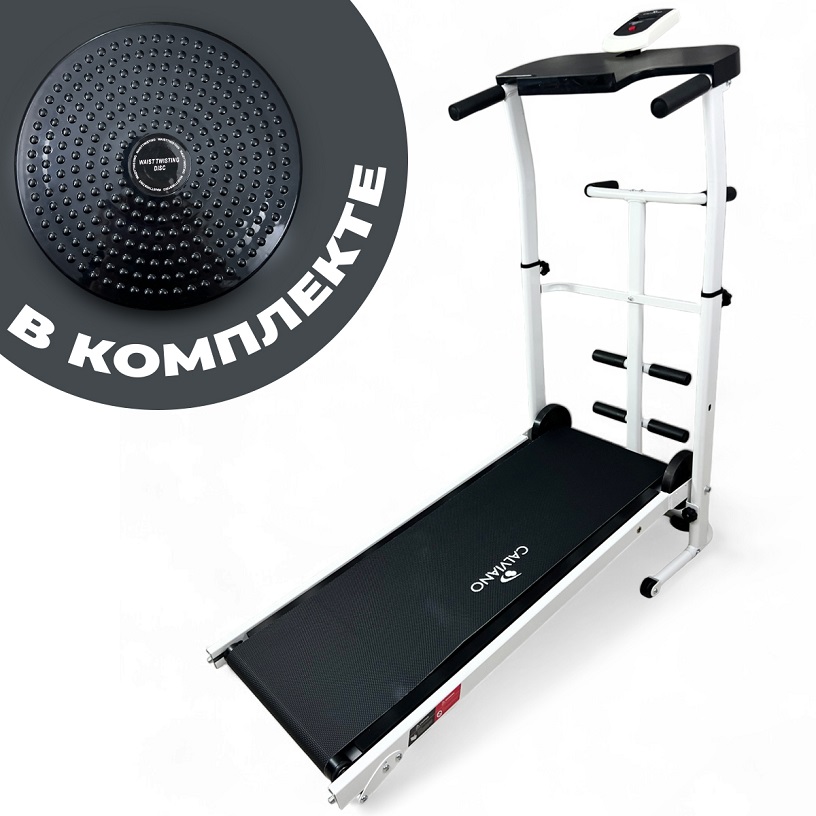 Механическая беговая дорожка Calviano BeFIT – это многофункциональный тренажер у вас дома. В конструкции дорожки есть специальные упоры для ног, что позволит делать упражнения на пресс. В комплекте идет «диск здоровья» и съемные эспандеры – для Вашей изящной талии и поддержания отличной физической формы всей семьи.Характеристики тренажера: