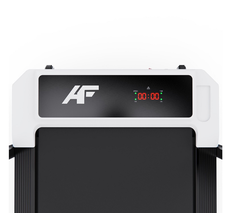 На встроенном LED-дисплее отображаются основные параметры тренировки: время, скорость, пройденная дистанция и количество калорий, что позволяет эффективно контролировать процесс занятий. Управление дорожкой осуществляется с помощью пульта дистанционного управления, с которого можно включать и выключать питание, а также регулировать скорость без прерывания тренировки.