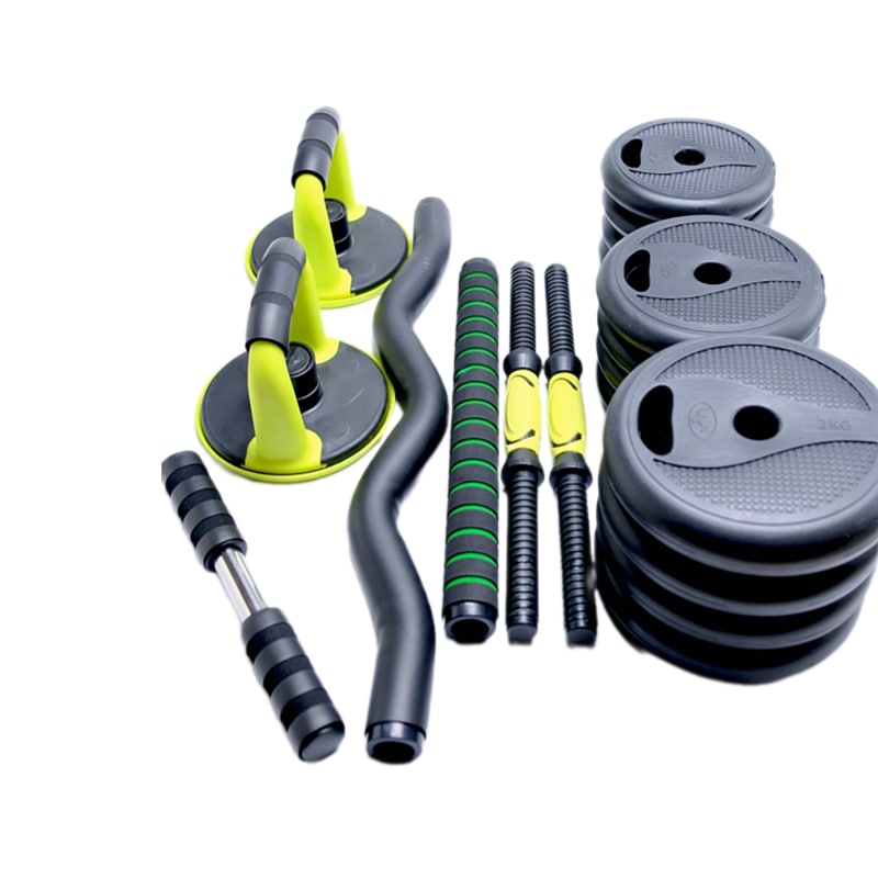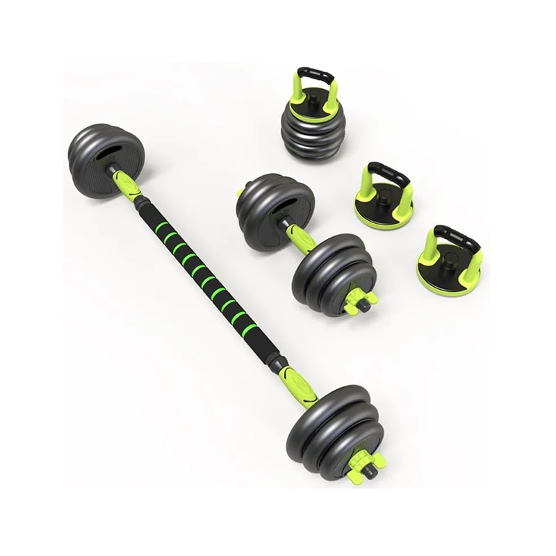 Набор гантелей со штангой и гирями 7 в 1 AMETIST 20 кг - это идеальный выбор для домашних тренировок. Данный набор является многофункциональным и удобным в использовании. Конструкция гантелей состоит из нескольких элементов, которые позволяют регулировать нагрузку в зависимости от вашей тренировочной программы.В набор гантелей входят два гантельных грифа с гайками и утяжеляющими дисками разного веса. Также в комплект входят соединительные грифы, которые позволяют превратить гантели в штангу с прямым или w-образным грифом. Кроме того, в комплекте есть гриф для ролика для пресса и набор для превращения гантелей в гирю. Ручки от гири могут быть использованы в качестве упоров для отжиманий.