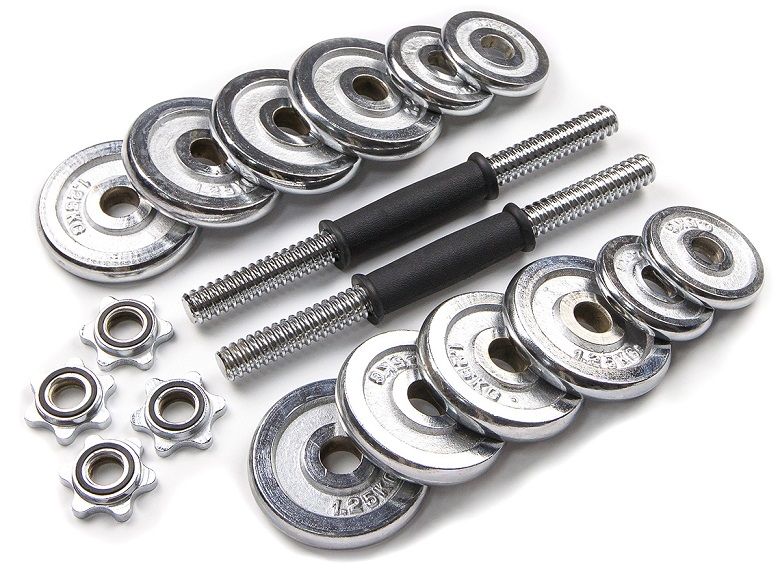 Представленный набор хромированных гантель включает: