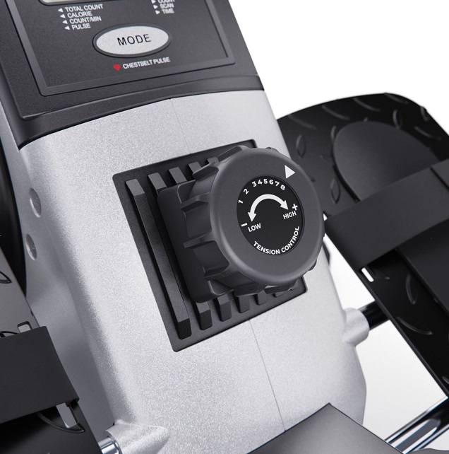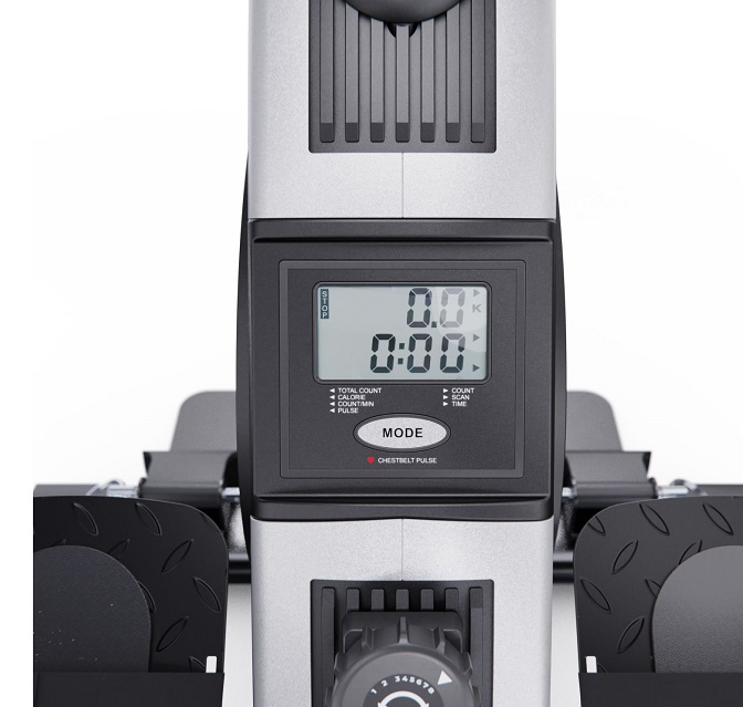 Монохромный LCD-дисплей отображает основные параметры тренировки, такие как пульс, время, количество гребков, общее количество гребков и калории, а также имеет режим сканирования. Размер консоли 10,5 х 11 х 3 см.
