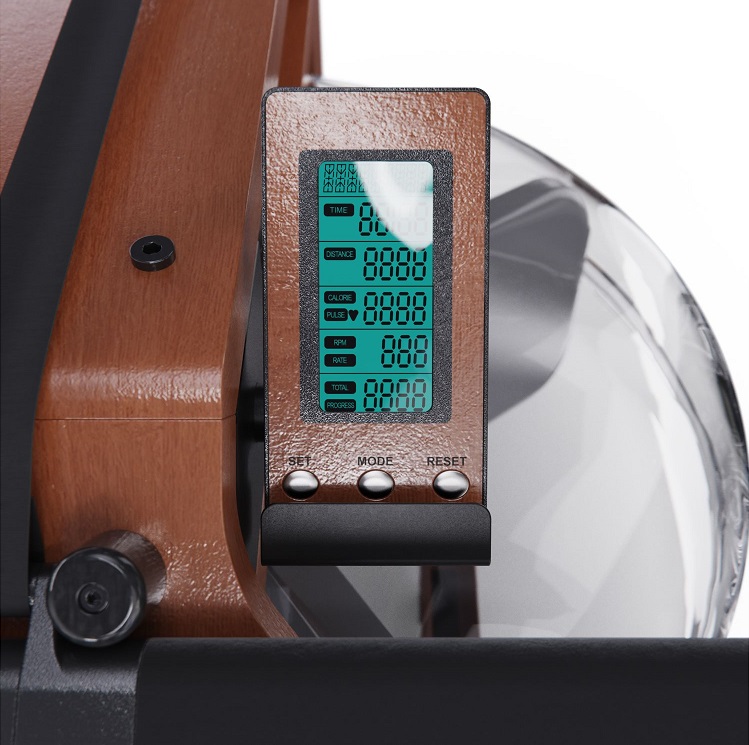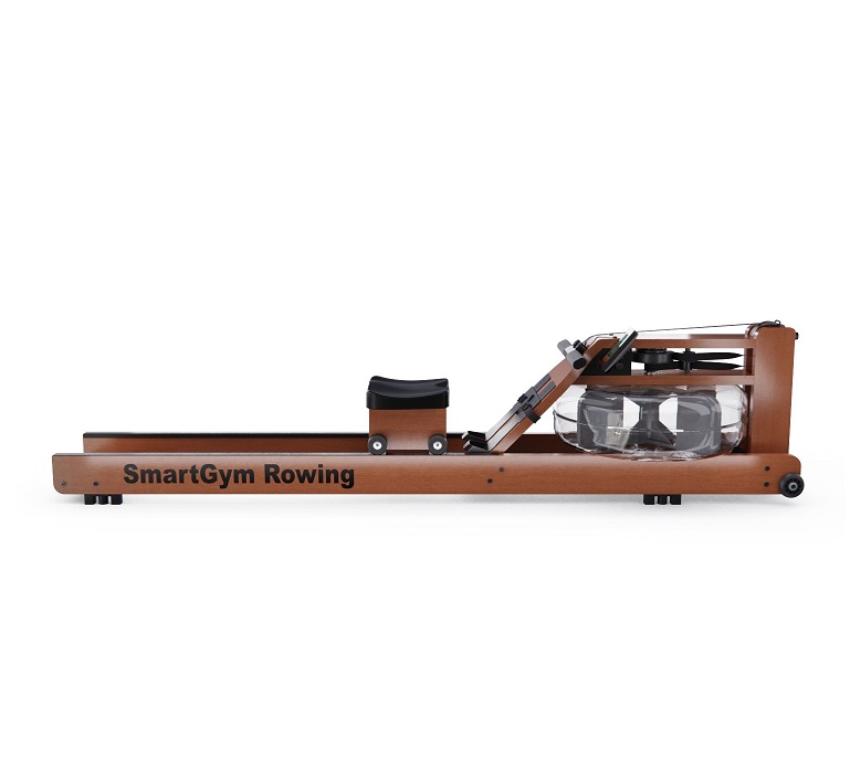 Консоль гребного тренажёра SmartGym имеет 8 уровней регулировки педалей и показывает время, расстояние, калории, пульс и обороты в минуту. Система нагрузки является водной: чем больше вы зальёте в бак воды, тем больше будет нагрузка. Транспортировочные ролики позволяют легко перемещать тренажёр, а его размер в сложенном виде составляет 60 x 56,5 x 210 см.