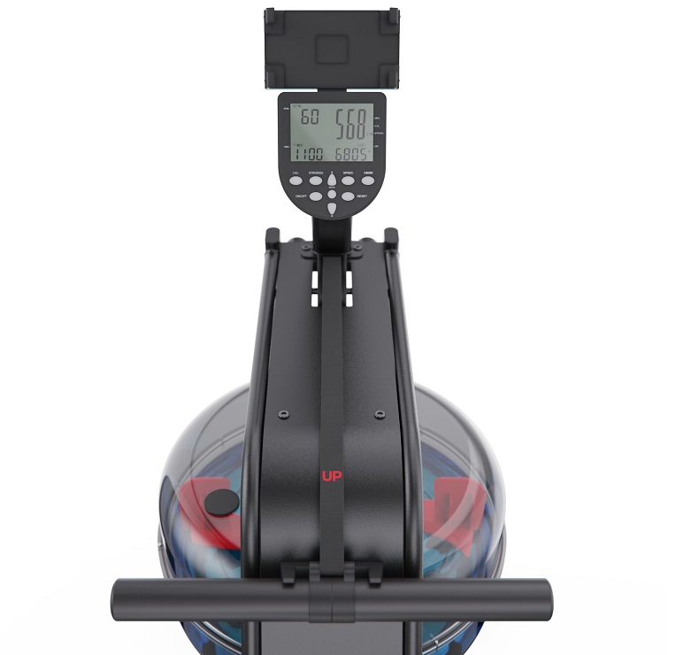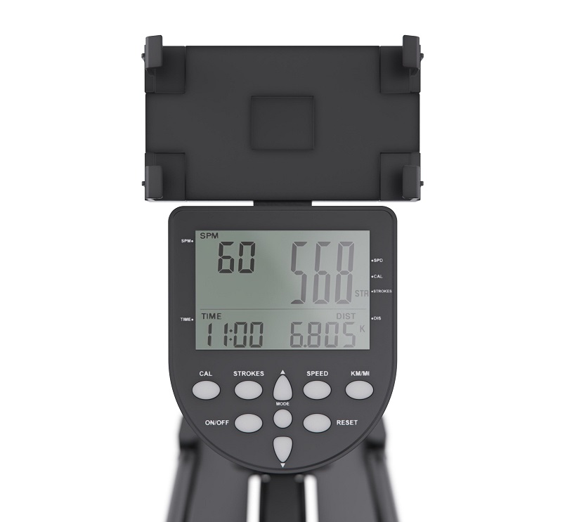 Тренажёр оснащён монохромным LCD-дисплеем, отображающим ключевые показатели тренировки — калории, дистанцию, скорость и общее количество гребков. Для расширения функционала предусмотрено подключение по Bluetooth к приложениям FITLOG и KINOMAP, что позволяет отслеживать прогресс и делать занятия более увлекательными. В комплект входят две батарейки типа AA, необходимые для работы дисплея.