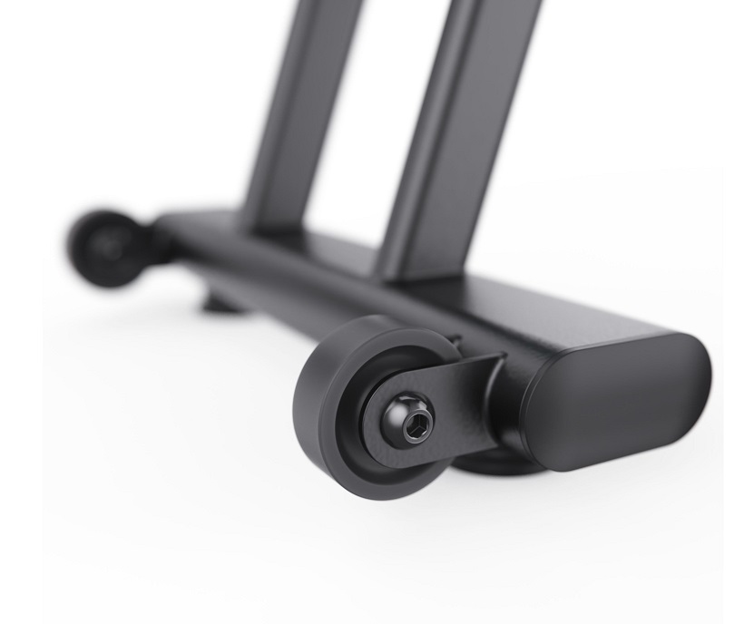 Рифленые педали с регулируемыми ремешками обеспечивают надежную фиксацию ног, а подставка под планшет позволяет использовать устройства для удобства во время тренировки. Также есть компенсаторы неровности пола, которые гарантируют стабильность тренажера, а транспортировочные ролики обеспечивают лёгкое и удобное перемещение, позволяя без труда менять его расположение в помещении.