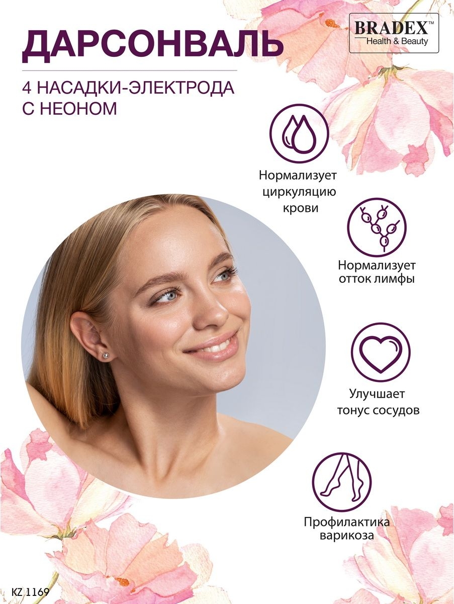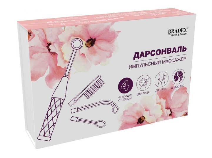Сосуды: дарсонвализация нормализует циркуляцию крови и отток лимфы, улучшает тонус сосудов, устраняет головные боли, нормализует сон, повышает работоспособность. Рекомендован для профилактики варикоза. Кожа: воздействие переменными токами нормализует секрецию сальных желез, повышает тургор и эластичность кожи, препятствует развитию морщин. Рекомендован для профилактики целлюлита. Волосы: импульсный массаж стимулирует работу волосяных луковиц, активирует рост волос, сокращает их выпадение. Воздействие насадкой-электродом с неоном улучшает качество волос и состояние кожи головы. Рекомендован для профилактики перхоти и себореи.