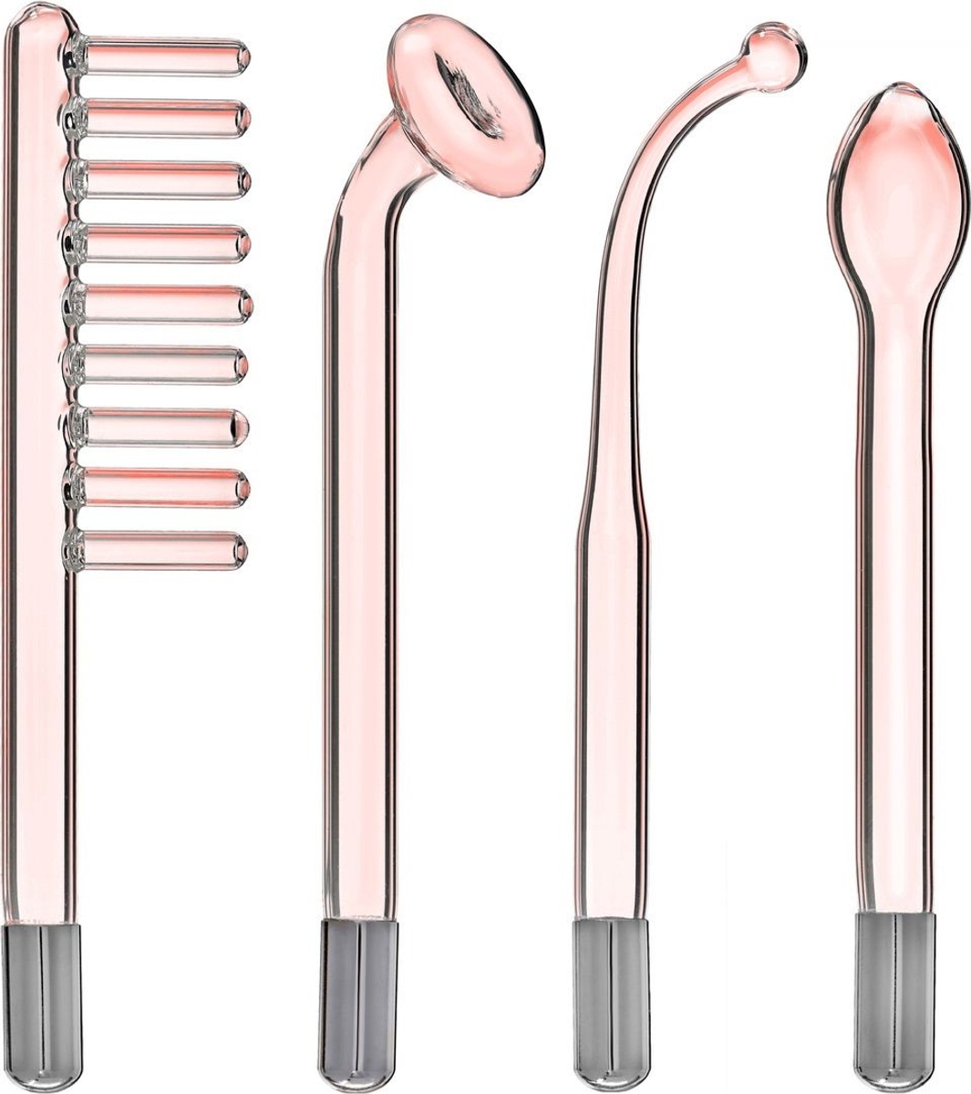 Дарсонваль импульсный массажер для лица, тела и волос с 4 насадками с неоном – массажер для домашнего использования, оказывающий мощное терапевтическое воздействие переменным током 110-400 кГц высокого напряжения через наполненные специальным газом стеклянные электроды.