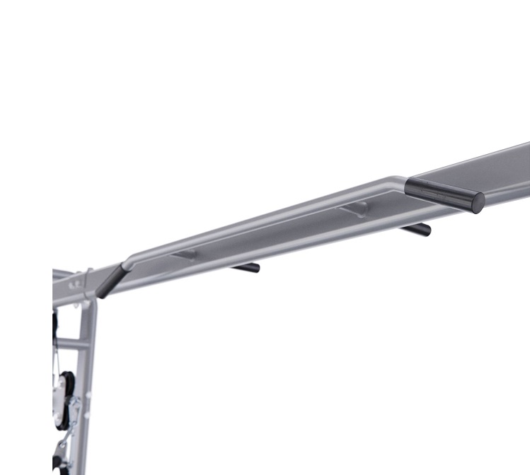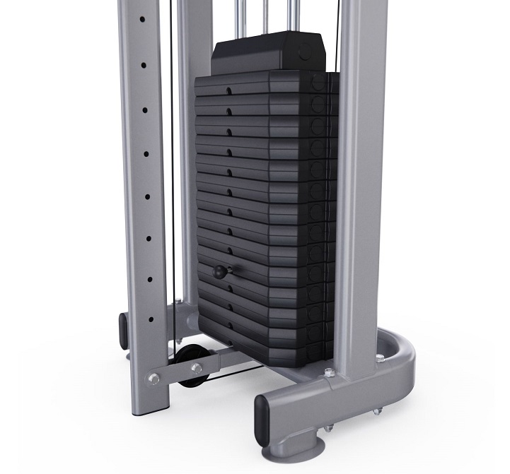 Силовые стеки весом по 90 кг входят в комплектацию, а вес каждой пластины равен 6 кг. Плавность хода стеков обеспечивают ролики на подшипниках. Конструкция тренажёра выполнена из высококачественной стали и обеспечивает его устойчивость и надёжность.