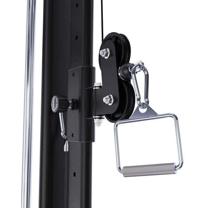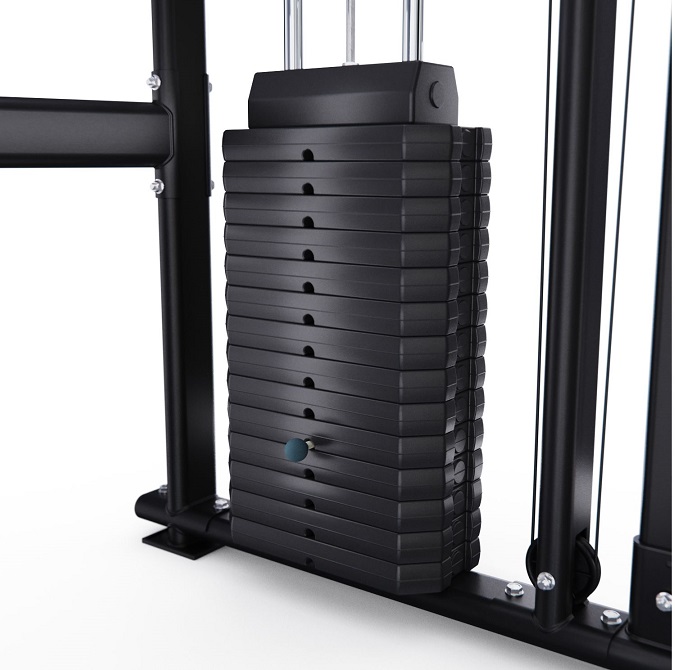 Силовые стеки весом по 90 кг входят в комплектацию, а вес каждой пластины равен 6 кг. Плавность хода стеков обеспечивают ролики на подшипниках. Конструкция тренажёра выполнена из высококачественной стали и обеспечивает его устойчивость и надёжность.