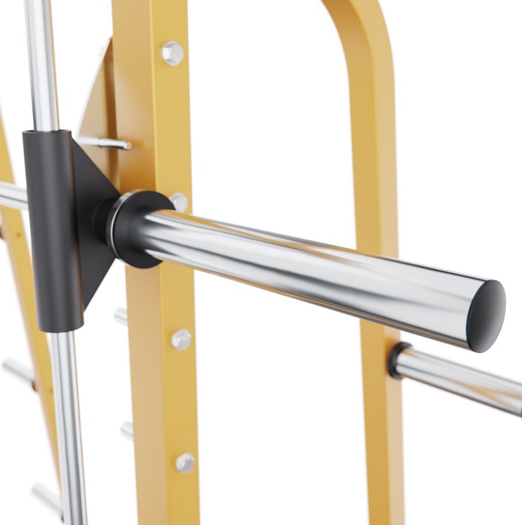 Тренажер имеет 9 уровней регулировки по высоте, что позволяет гибко настраивать рабочее положение под разные упражнения и рост спортсмена. Для дополнительных тренировок предусмотрен турник длиной 88 см с максимальной нагрузкой до 200 кг.