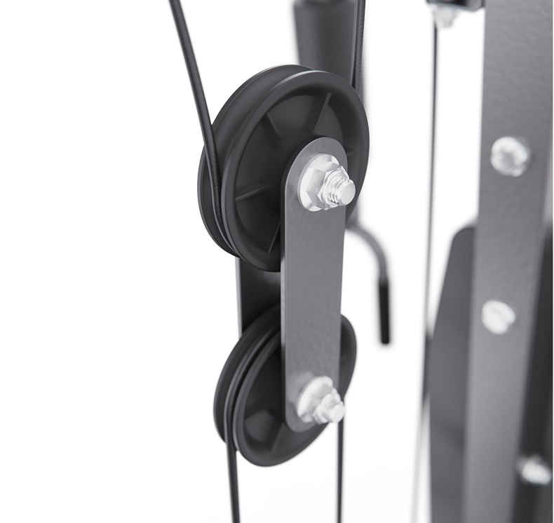 В конструкции предусмотрено 9 свободных блоков и 1 встроенный весовой блок весом 46 кг. Такая система позволяет гибко настраивать нагрузку под уровень подготовки пользователя — от начинающего до уверенного спортсмена. Силовой комплекс удобно использовать как для набора мышечной массы, так и для поддержания формы.