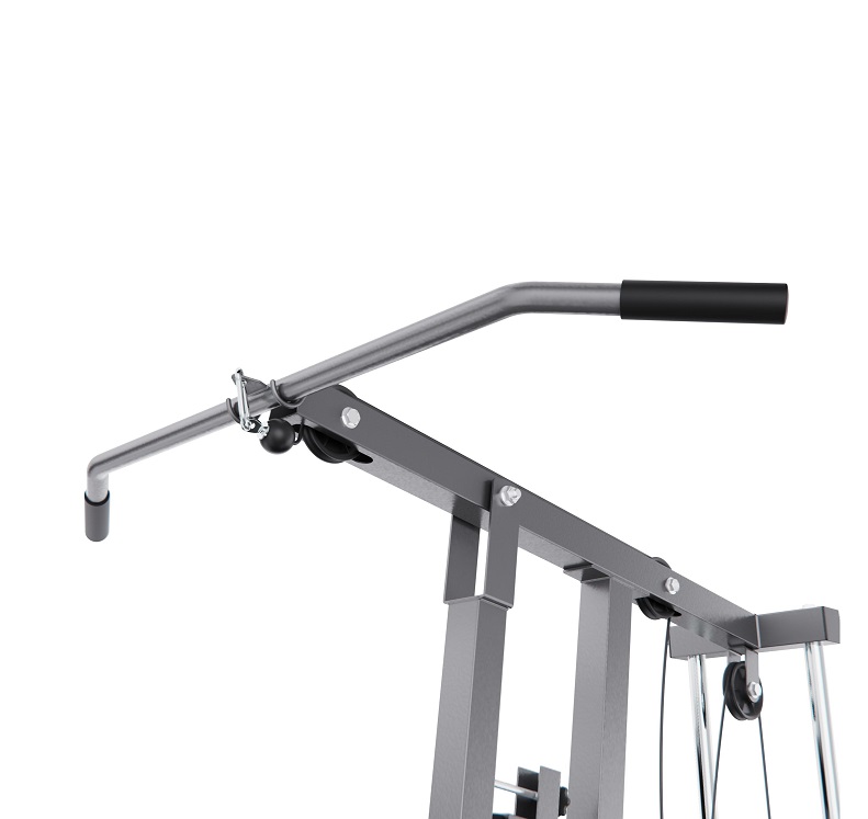 Многофункциональный силовой комплекс позволяет выполнять упражнения на грудь, спину, плечи, руки, пресс и ноги. В оснащение входят верхняя и нижняя тяга, а также тренажер «бабочка», что значительно расширяет возможности тренировок. Нижний валик предназначен для фиксации ног и выполнения упражнений на разгибание и сгибание, а также обеспечивает устойчивое положение тела при работе с верхней тягой.