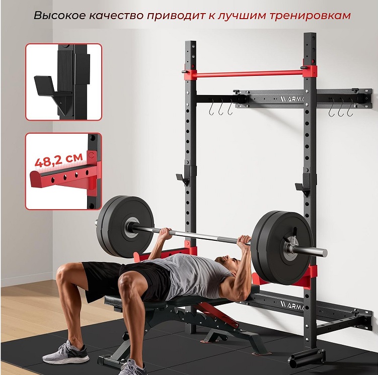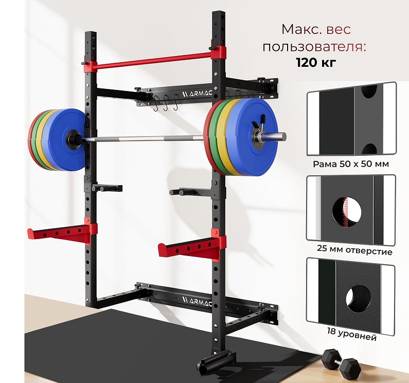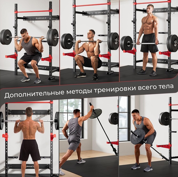 Силовая рама стационарная DFC D031 — компактное и функциональное решение для домашних тренировок, позволяющее безопасно выполнять широкий спектр силовых упражнений, включая подтягивания, отжимания и работу с дополнительными весами. Статическая максимальная нагрузка 410.Максимальный вес пользователя составляет до 120 кг, что обеспечивает комфортную и безопасную эксплуатацию для людей с разным уровнем подготовки. Рама имеет 18 регулировочных отверстий, что позволяет адаптировать высоту перекладин под различные упражнения и рост пользователя. Турник и перекладины выдерживают значительные нагрузки, а конструкция рамы прочная и надежная, обеспечивая стабильность во время занятий.