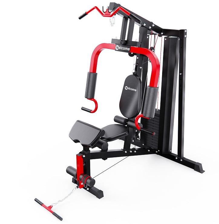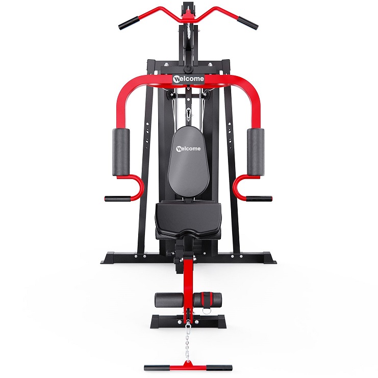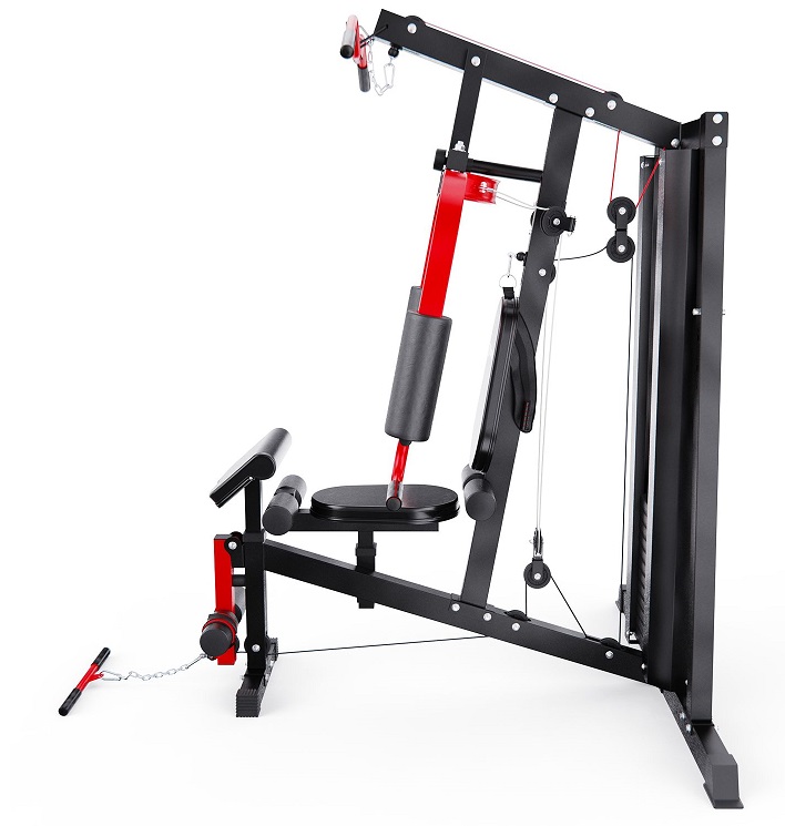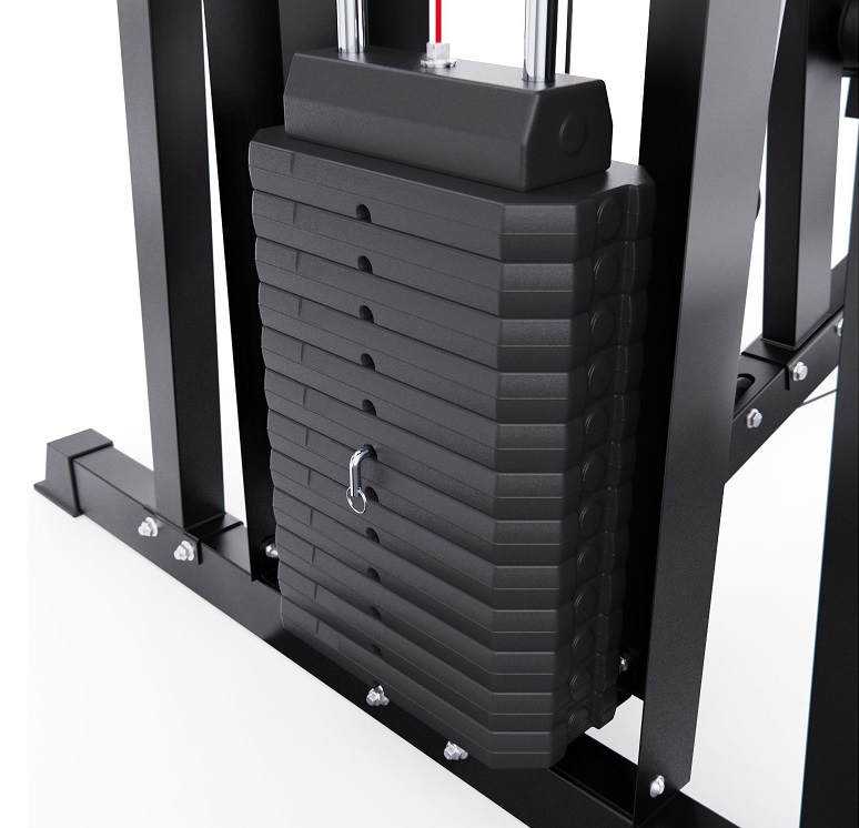 Силовой комплекс DFC WRK-5000 — полноценный тренажёрный зал у вас дома! Этот домашний силовой комплекс позволяет выполнять широкий спектр упражнений на все группы мышц: грудные, спину, плечи, бицепс, трицепс, пресс и ноги.Габариты в рабочем состоянии — 147 х 133 х 208 см, что позволяет разместить тренажёр даже в условиях ограниченного пространства, например, в квартире. Эргономичная конструкция обеспечивает комфорт и безопасность во время занятий. В комплекте — 11 весовых блоков по 5,8 кг и 1 верхний на 3 кг, общим весом 66,8 кг. Это позволяет гибко подстраивать тренировочную нагрузку под ваш уровень подготовки.