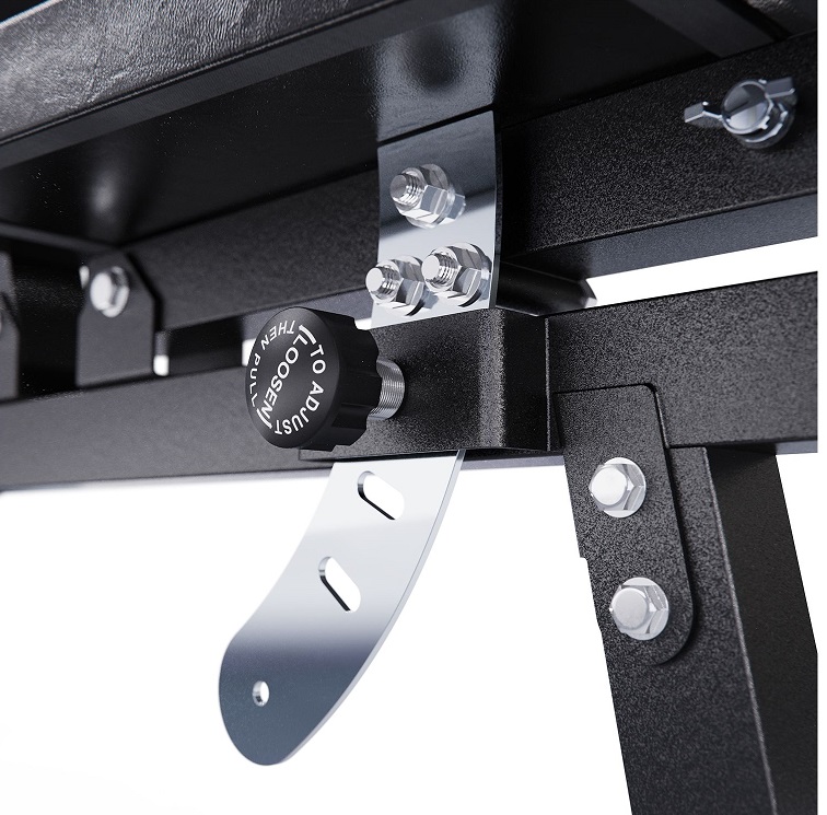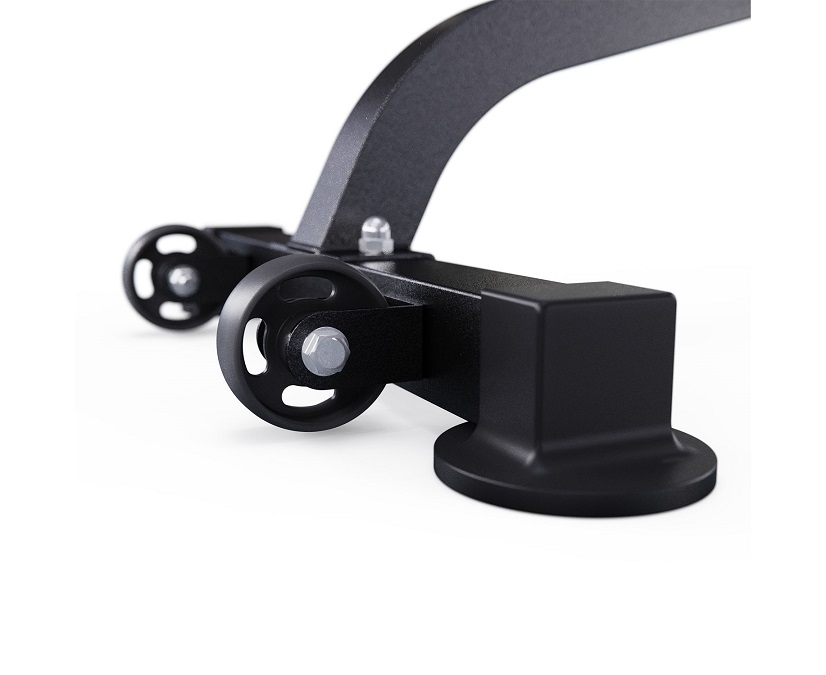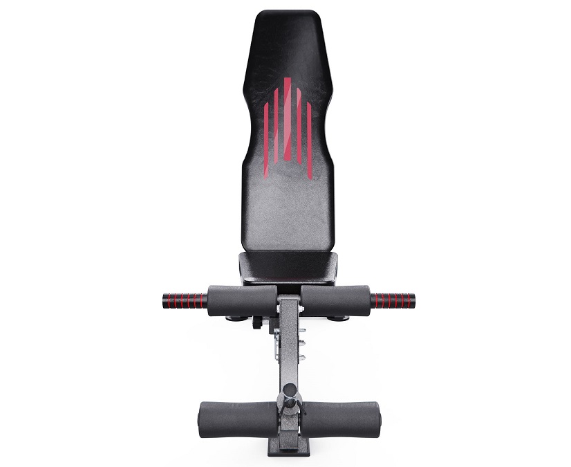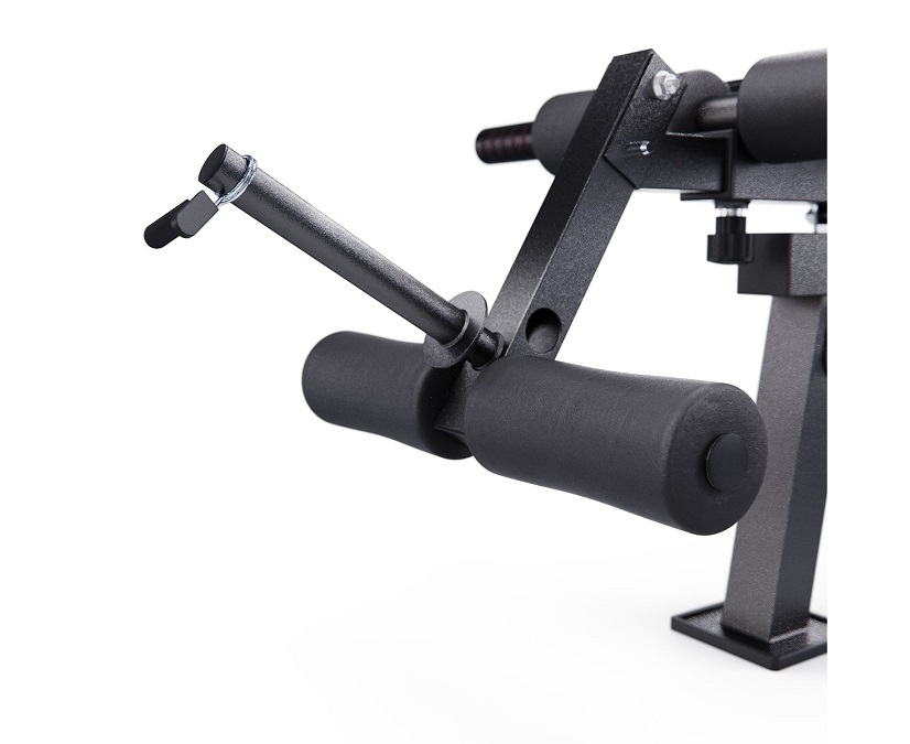 Скамья спортивная оснащена 11 уровнями наклона спинки и 3 положениями сиденья, что позволяет выполнять разнообразные упражнения для проработки всех групп мышц. Оптимальная высота сиденья 43 см делает тренировки комфортными для людей любого роста. В комплекте также идут 4 мягких валика из вспененного материала для фиксации ног в разных положениях. Длина посадочного места под диски 18,5 см, посадочный диаметр для дисков равен 25 мм. В комплекте идёт пружинный замок для дисков.