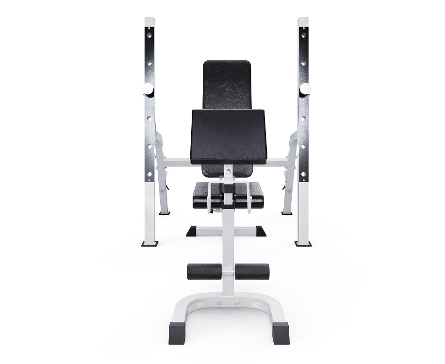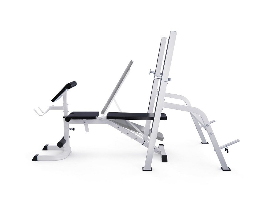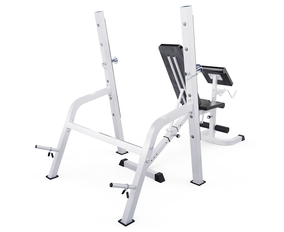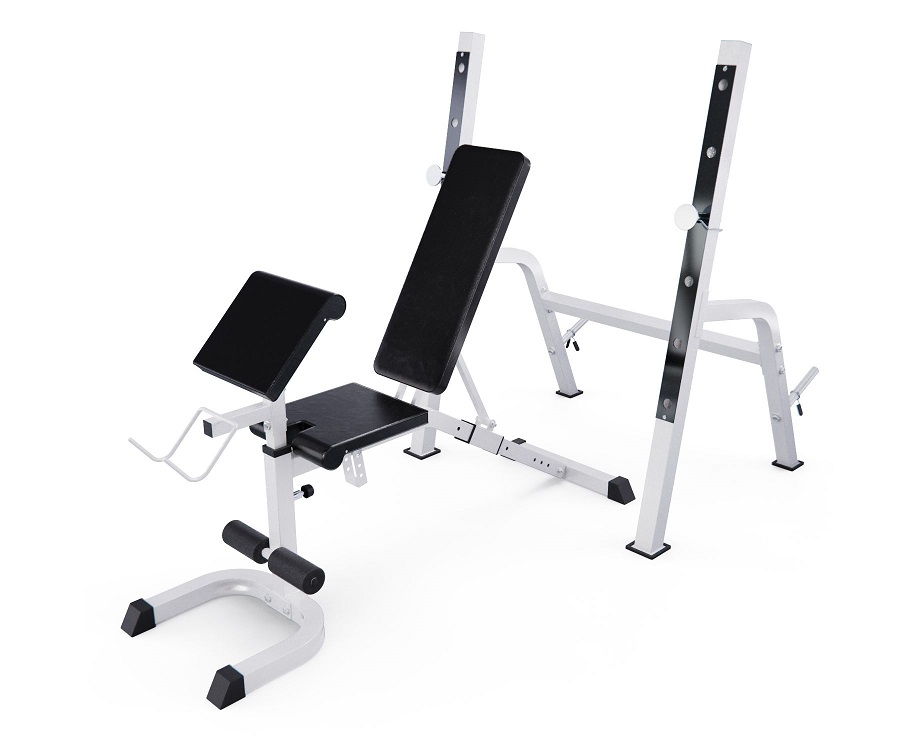 Скамья со стойками под штангу DFC GORILLA белая с партой для бицепса