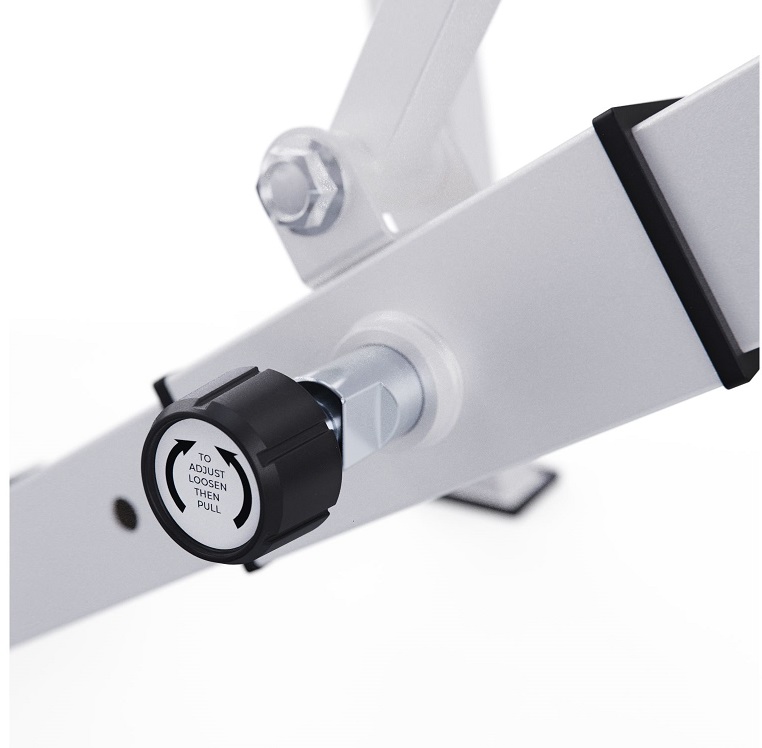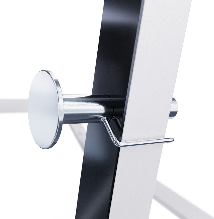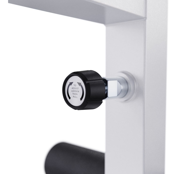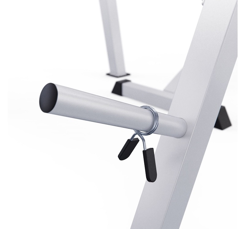 Высота держателей под штангу регулируется на 6 уровней от 46,5 до 138,5 см, что обеспечивает комфорт во время выполнения упражнений и позволяет настроить тренажер под себя.