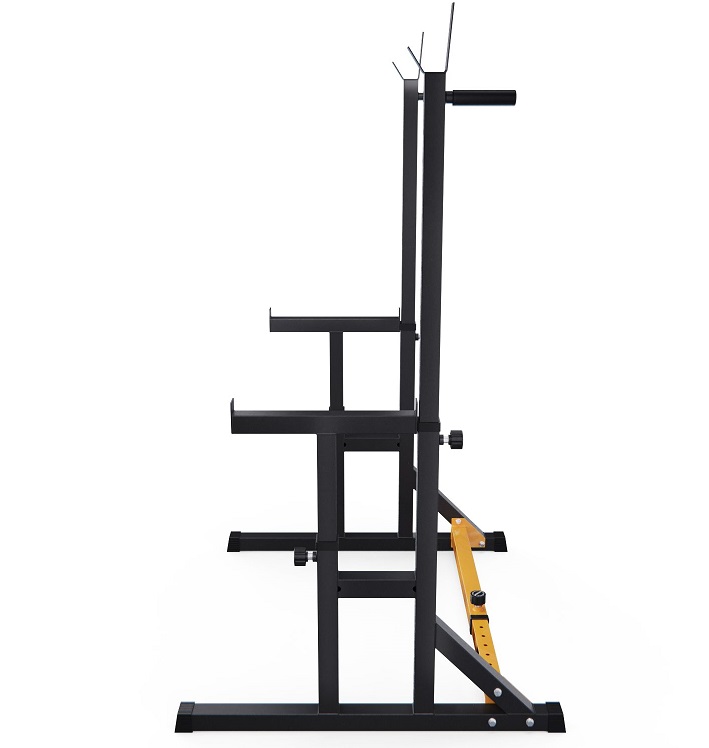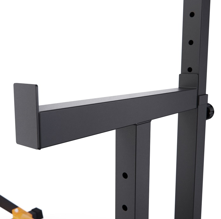 Стойка для штанги с подстраховкой DFC Y-GYM TF-63, с упорами для отжиманий - многофункциональная стойка для домашних тренировок. Серия Y-GYM – это тренажеры в современном дизайне, где динамичный желтый цвет гармонично сочетается с элегантным черным. Продуманная геометрия и контрастное цветовое решение позволят тренажеру гармонично вписаться в любую комнату и стать ярким акцентом вашего интерьера. Это идеальное решение для тех, кто ценит функциональность и эстетику в каждой детали своего дома.Устойчивое основание стойки для приседаний из высокопрочной профильной трубы 50 х 45 х 1,5 мм выдерживает динамическую нагрузку до 200 кг (динамическая нагрузка – нагрузка на элементы конструкции в движении). Подходит для выполнения полного спектра упражнений со штангой: от приседаний и становой тяги до жима лежа. Нескользящие упоры для отжиманий помогут разнообразить ваши тренировки.