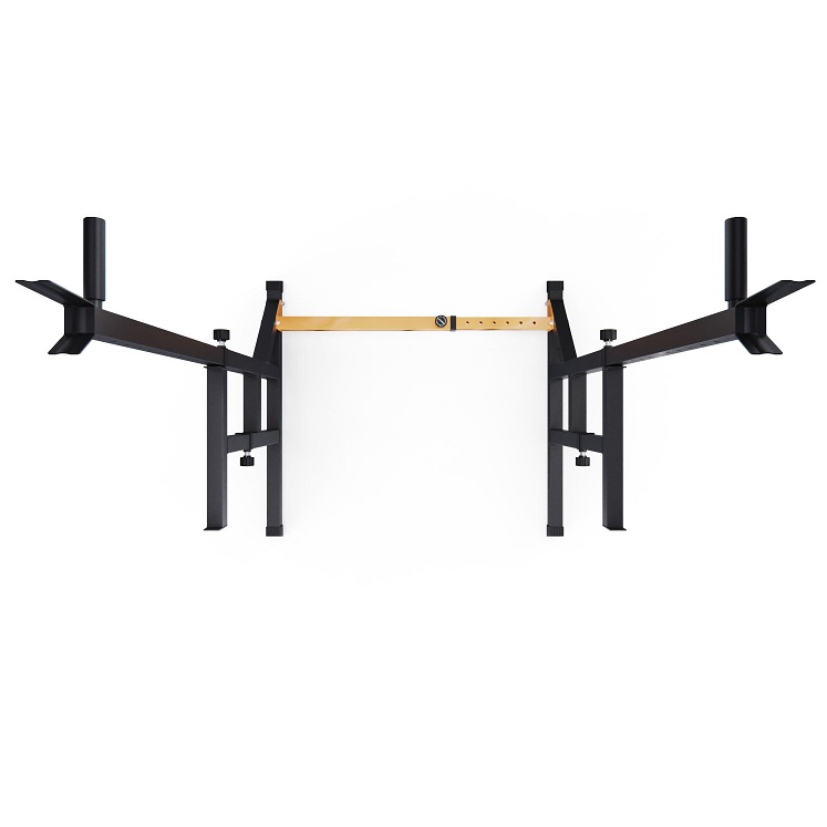 Ширину стойки для жима можно индивидуально настроить от 80 до 113,5 см. Нескользящие ножки надежно устанавливаются на полу и не царапают поверхность.