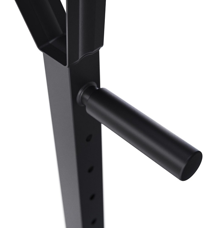 Высота держателей под штангу легко регулируется без дополнительных инструментов при помощи ручки. Держатели под штангу регулируются по высоте на 11 уровней большая в диапазоне от 102 до 162 см и на 5 уровней меньшая в диапазоне от 64 до 88 см.