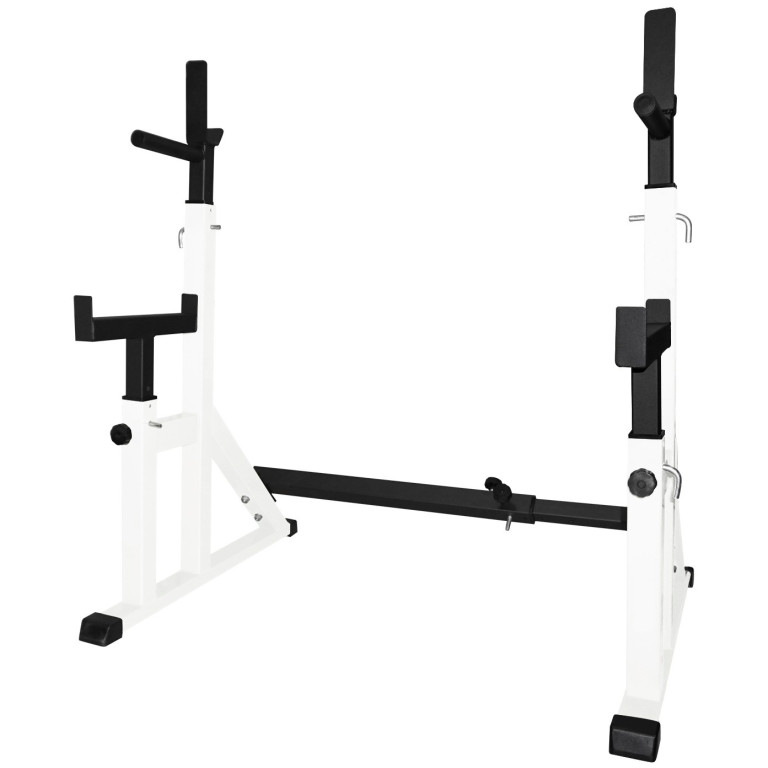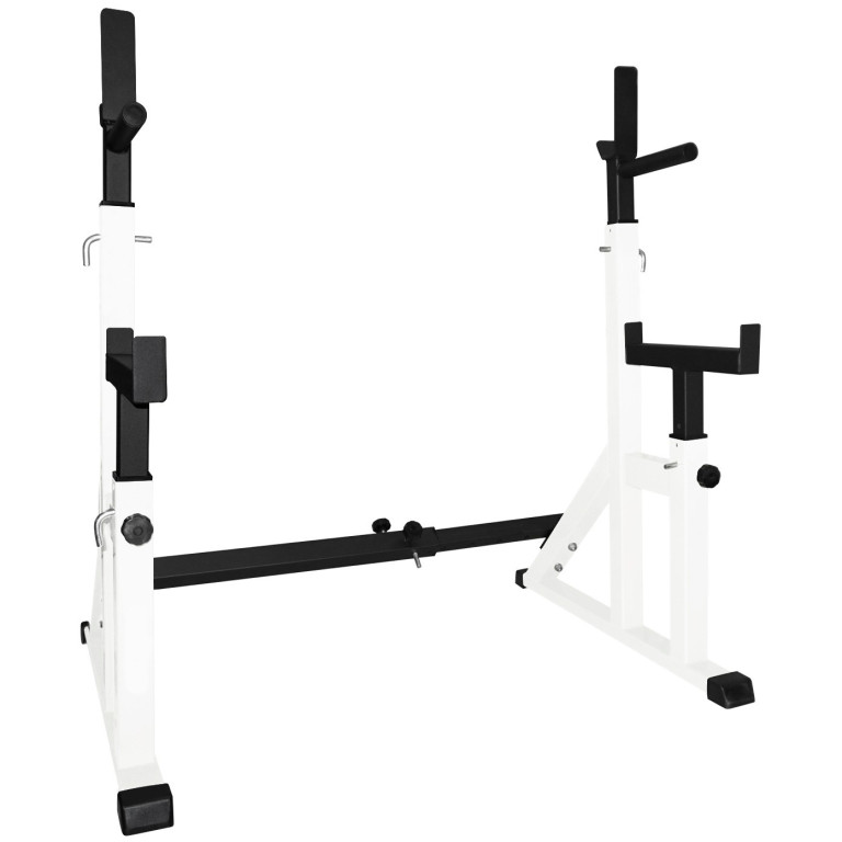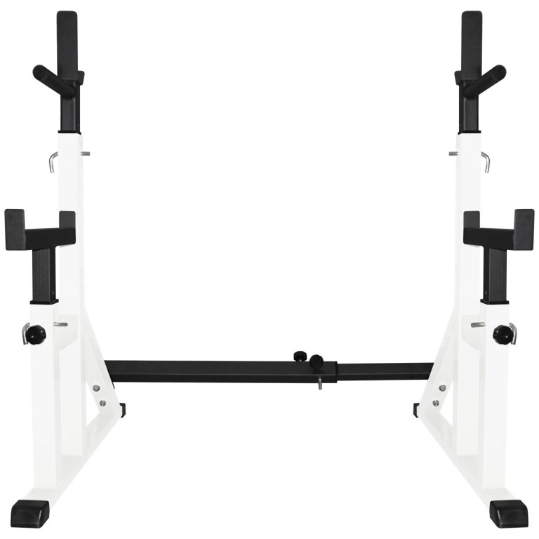 Так же просто стойка регулируется по ширине. Это позволяет использовать гриф практически любой длины (максимальное расстояние между стойками 136 см). Однако, в зависимости от вашего роста и длины ваших рук, страховочные упоры могут немного мешать в локтях при занятиях со слишком коротким грифом. Если вы привыкли тренироваться с грифом короче 180 см, лучше воспользоваться стойкой «Central Sport» без страховочных упоров, правда, тогда вам понадобится помощь страхующего.