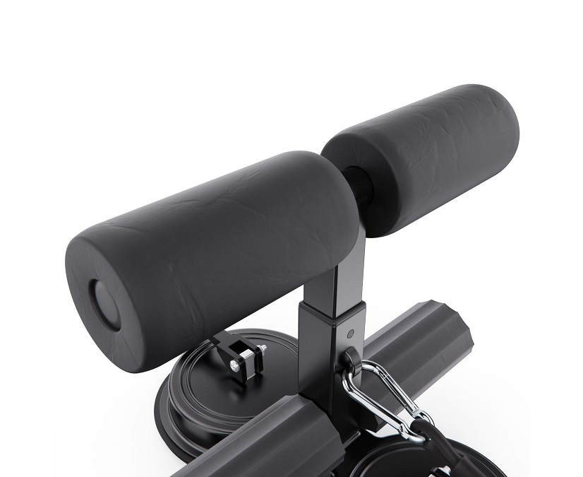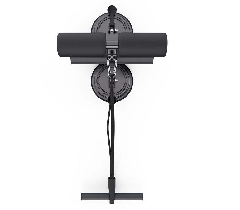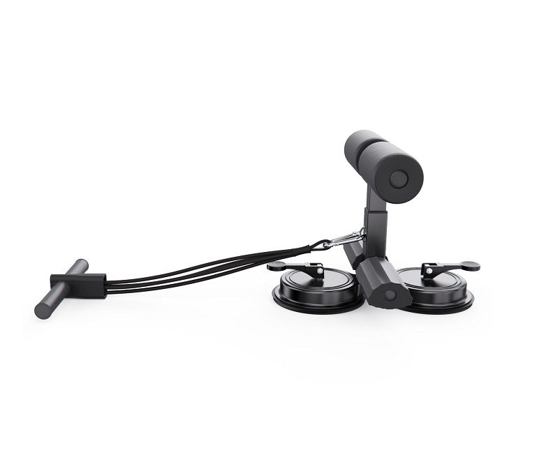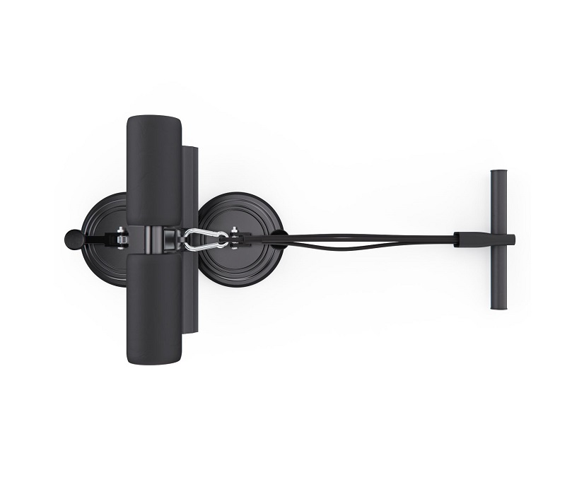 Тренажёр оснащён двумя мощными присосками диаметром 108 мм, которые обеспечивают прочное сцепление с полом и исключают скольжение во время упражнений. Длина рукоятки — 23 х 3 см, а мягкие валики диаметром 10,5 х 5 см плотно фиксируют стопы, делая тренировки безопасными и комфортными.