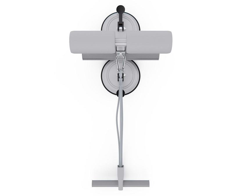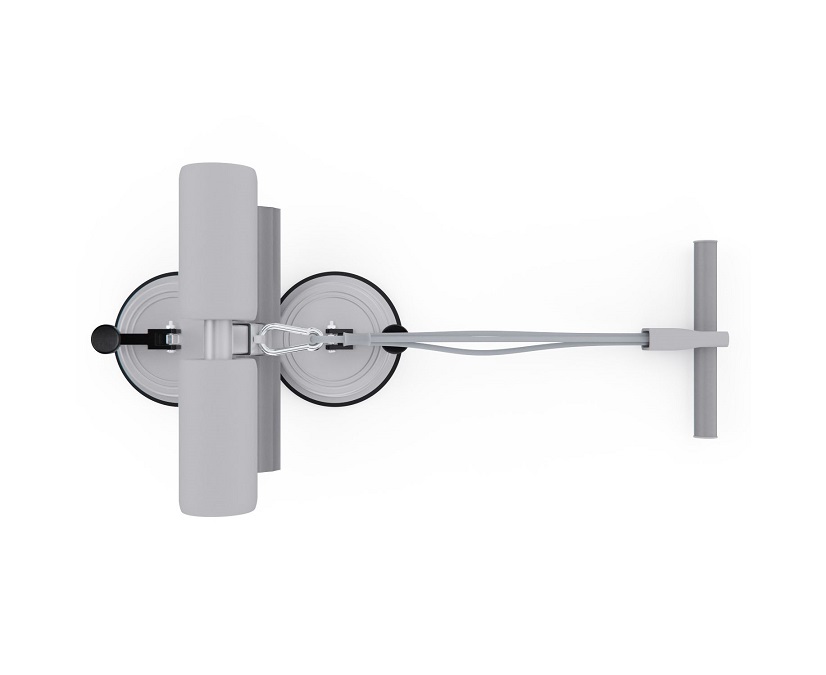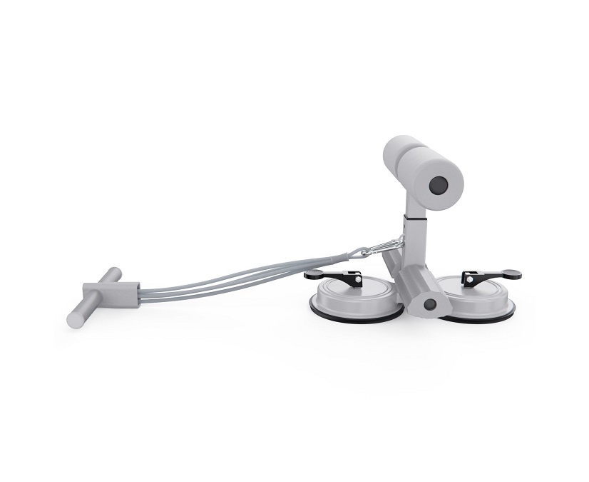 Тренажёр оснащён двумя мощными присосками диаметром 108 мм, которые обеспечивают прочное сцепление с полом и исключают скольжение во время упражнений. Длина рукоятки — 23 х 3 см, а мягкие валики диаметром 10,5 х 5 см плотно фиксируют стопы, делая тренировки безопасными и комфортными.
