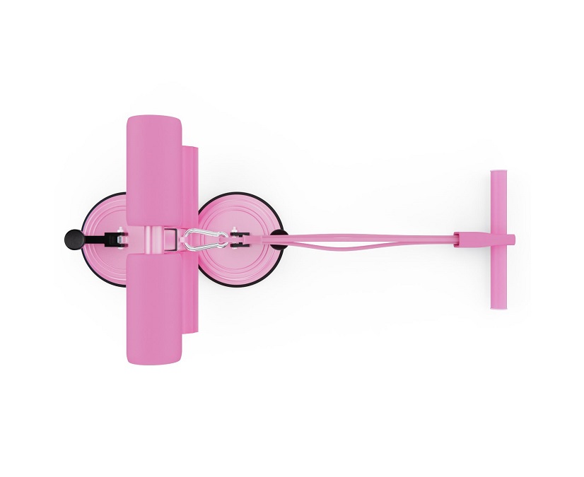Тренажёр оснащён двумя мощными присосками диаметром 108 мм, которые обеспечивают прочное сцепление с полом и исключают скольжение во время упражнений. Длина рукоятки — 23 х 3 см, а мягкие валики диаметром 10,5 х 5 см плотно фиксируют стопы, делая тренировки безопасными и комфортными.