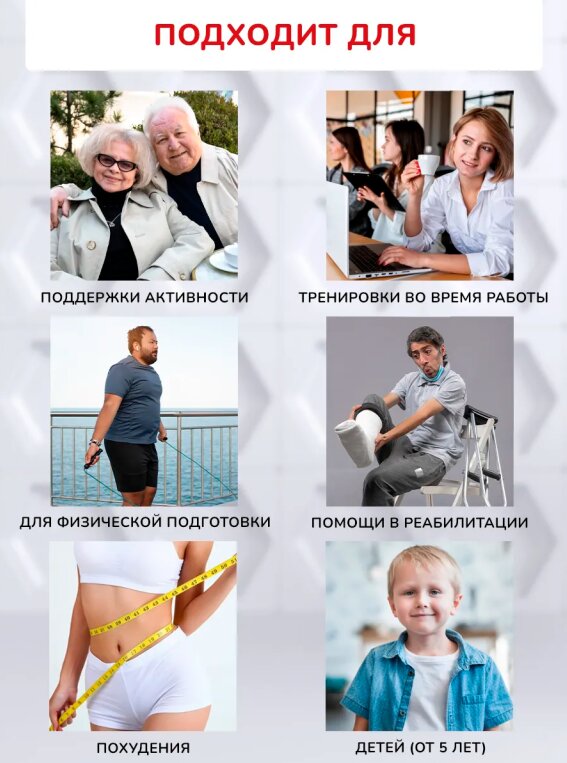 - Доп. опции тренажера: Дисплей; для рук; для ног