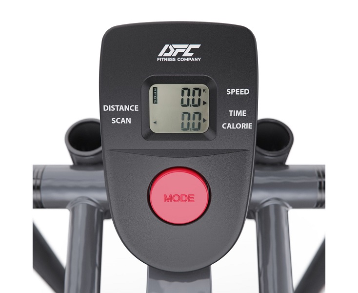 Консоль тренажёра показывает время, скорость, дистанцию, количество потраченных калорий и режим сканирования. Для работы консоли требуется батарейка АА (входит в комплект).