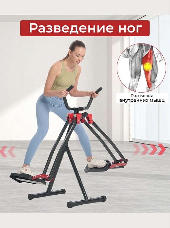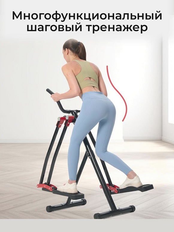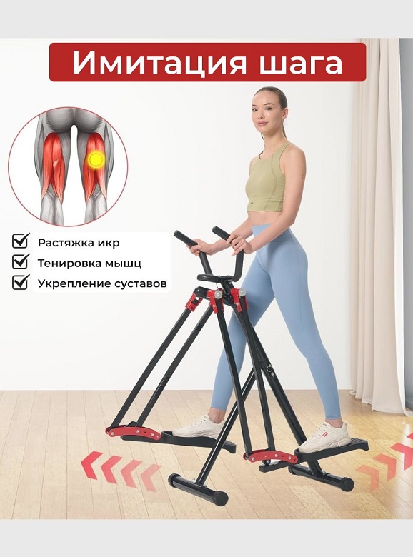 Многофункциональный шаговый тренажер Air Walker DFC HOTWAVE 4 в 1 предназначен для домашнего использования и подходит для эффективных кардио-нагрузок и укрепления мышц нижней части тела. Тренажер сочетает в себе функции степпера, эллипса и беговой дорожки, позволяя выполнять движения вперёд, а также в стороны за счёт разведения ног. Во время тренировки сохраняется правильное положение тела, что помогает поддерживать ровную осанку.Максимальный допустимый вес пользователя составляет 160 кг. Просторные шаговые педали размером 37 х 13,5 см обеспечивают устойчивое, комфортное и безопасное положение ног на протяжении всей тренировки. Имитация естественного шага способствует растяжке икроножных мышц, тренировке мышц ног, укреплению суставов, а также эффективной проработке и растяжке внутренних мышц бедер.