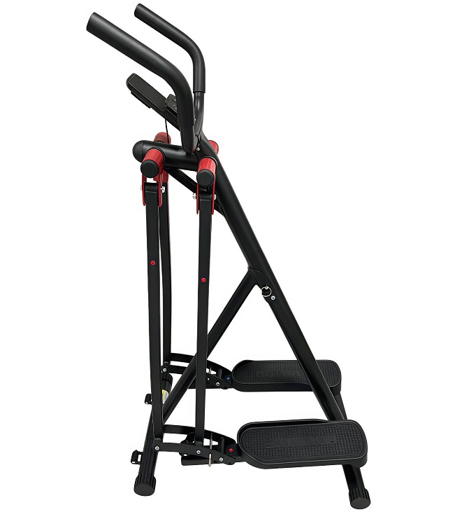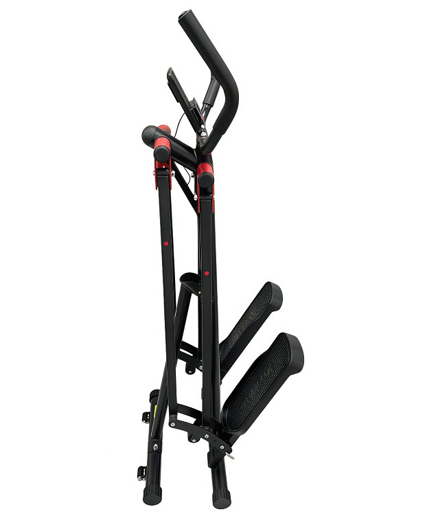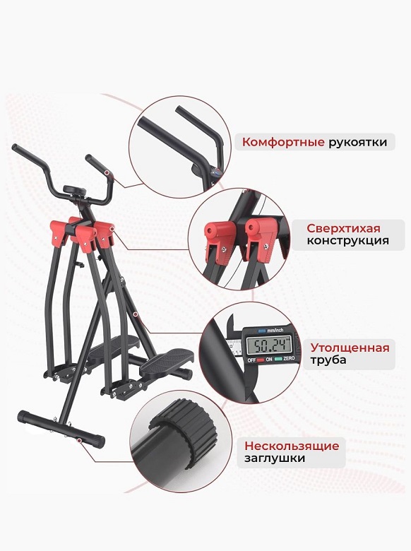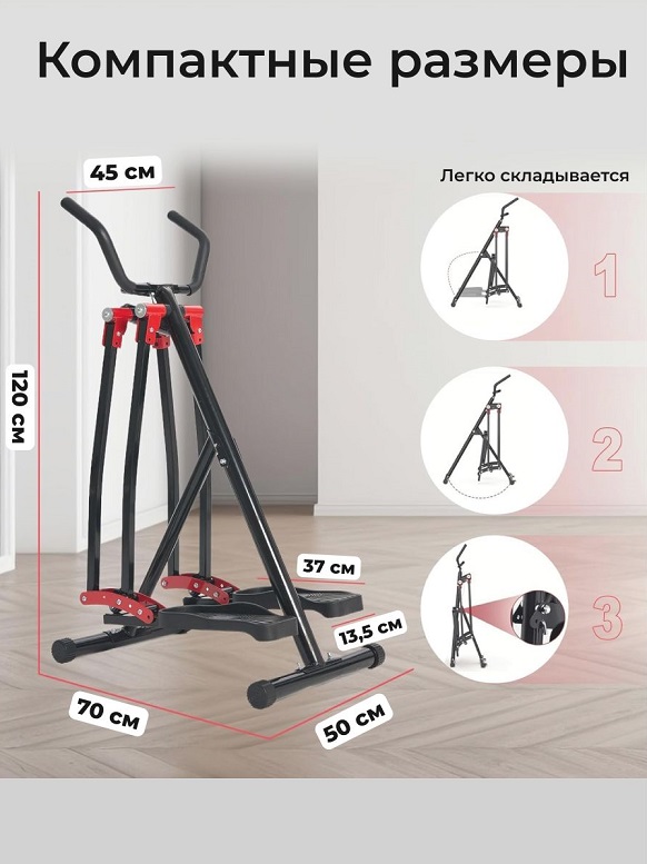Благодаря складной конструкции он не занимает много места и удобен в хранении, а встроенные транспортировочные ролики позволяют без усилий перемещать тренажёр по помещению. Тренажёр выполнен в стильном чёрно-красном цвете, который придаёт ему динамичный внешний вид и гармонично вписывается в домашний интерьер..