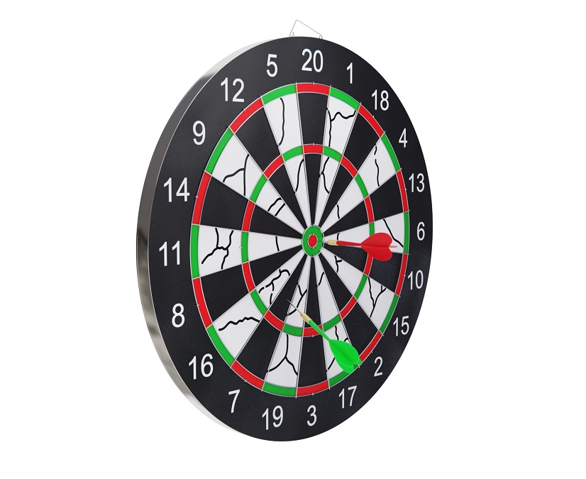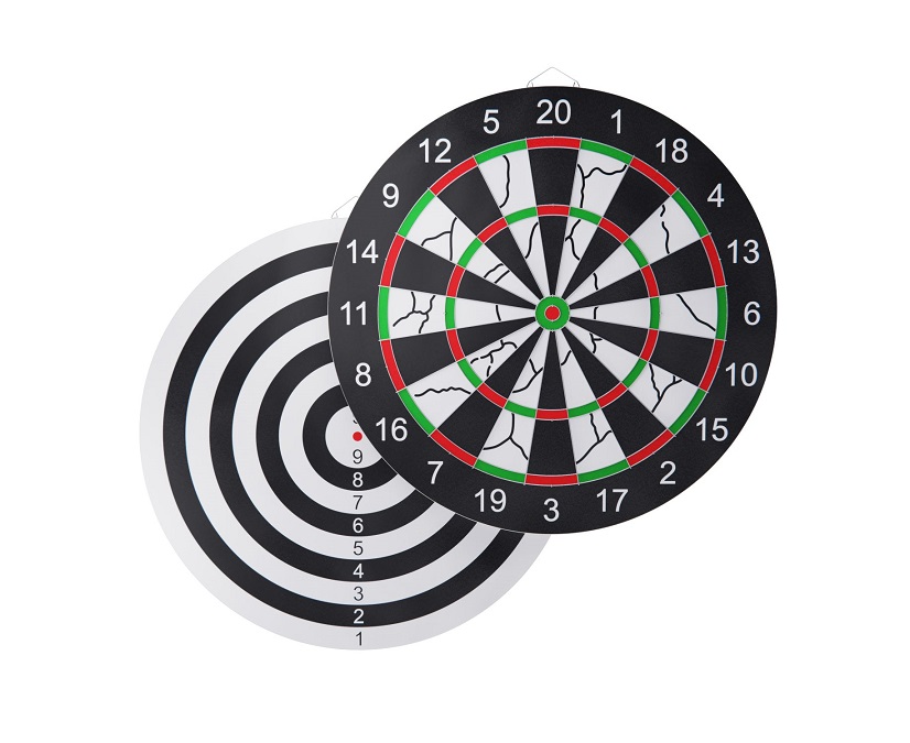 В комплект входят 6 дротиков с металлическими наконечниками, каждый весом 6 грамм, что облегчает броски. Мишень имеет два различных поля с двух сторон, благодаря чему можно разнообразить игру. Диаметр мишени дартса составляет 40,3 сантиметра.