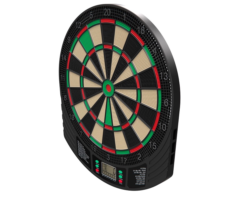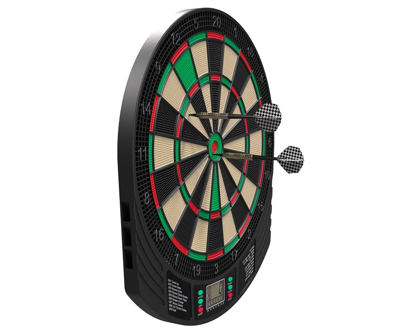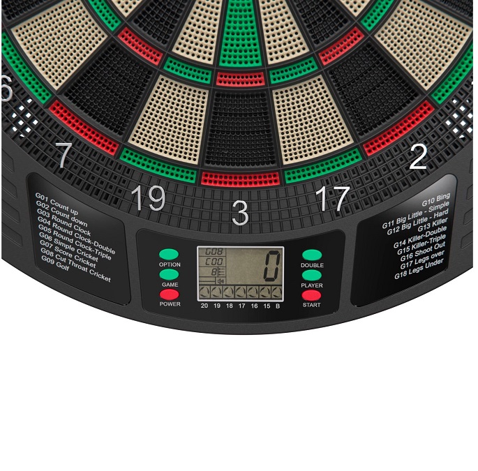 DFC DARB29 - отличный выбор для любителей дартса. Система включает в себя 18 видов игр и 159 опций, которые добавят интереса и азарта в вашу игру. Одновременно в дартс могут играть от 1 до 8 игроков.Для работы Дартса DFC DARB29 требуются 3 батарейки типа АА (1,5В, батарейки в комплект не входят) или адаптер питания (постоянного тока). Адаптер является опциональным, в комплект поставки не входит. Материал, из которого изготовлен прибор - ABS пластик. Диаметр мишени составляет 35 см, а дисплей выполнен в монохромном исполнении на ЖК-экране.