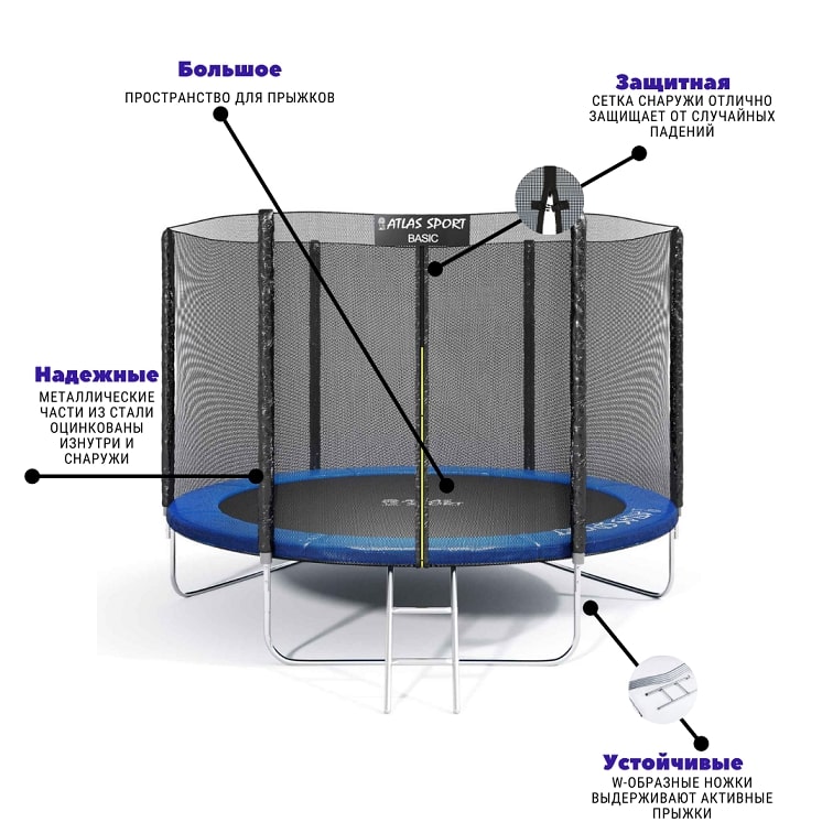 Батут ATLAS SPORT — это отличный способ проводить свободное время всей семьей, интересно обустроить сад и участок, подарить много ярких веселых минут детям.