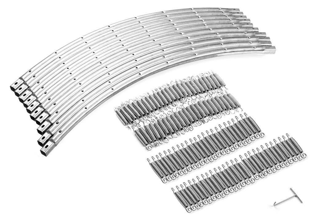 Пружины батута Atlas Sport имеют особую форму для правильного распределения нагрузки на металл при растяжении.