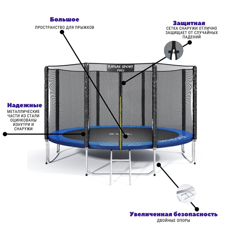 Батуты Atlas Sport изготовлены по современной технологии из высококачественных материалов, что обеспечивает надежность и безопасность, продуманные в каждой детали.