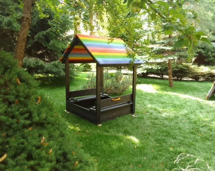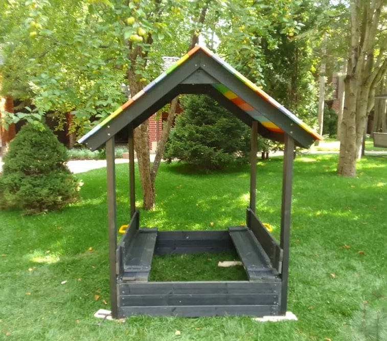 Для дополнительной безопасности и удобства, песочница также оснащена раскладной крышкой. В закрытом виде она защищает песок от животных и других нежелательных посетителей, а в открытом виде представляет собой две удобные лавочки для сидения.