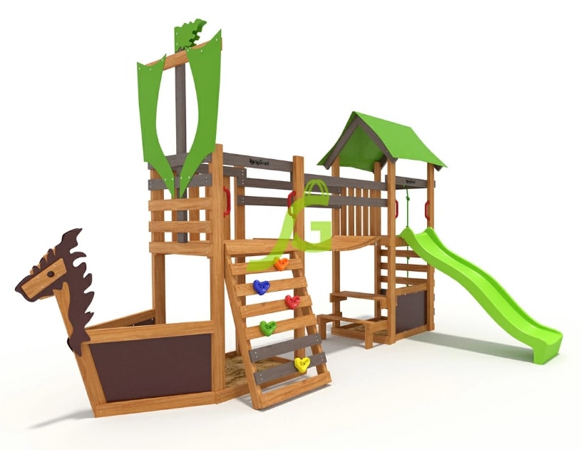 • песочница с декором в виде корабля и "драконом";