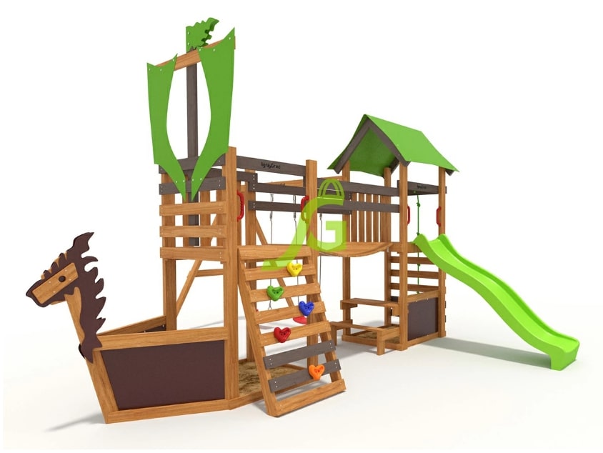 • песочница с декором в виде корабля и "драконом";