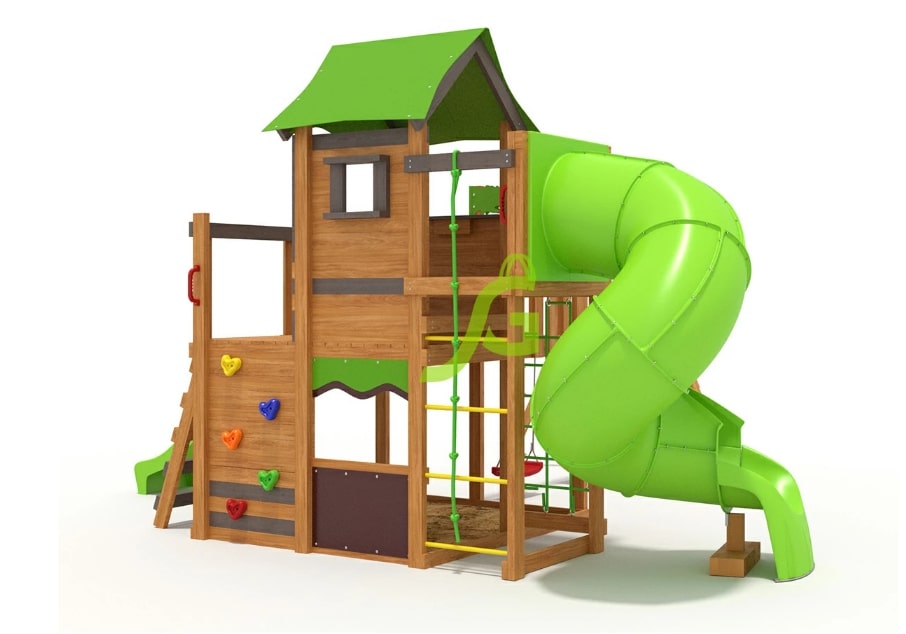 Горка, Домик (замок), Качели, Скалодром, Канат |