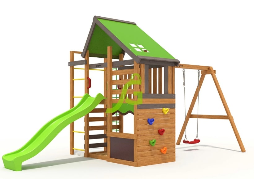Игровая площадка IgraGrad W4s Спорт для детей представляет собой небольшой двухэтажный домик, который станет отличным местом для развлечения малышей.На первом этаже расположена песочница и импровизированный магазинчик, где можно «испечь» из песка вкусные «куличики» и тут же их «продать». Подняться на второй уровень можно по лестнице либо преодолев специальный скалодром. Спуск с яркой горки в виде волны принесет массу положительных эмоций и радости. Классические качели – именно то, что так необходимо каждому юному непоседе.