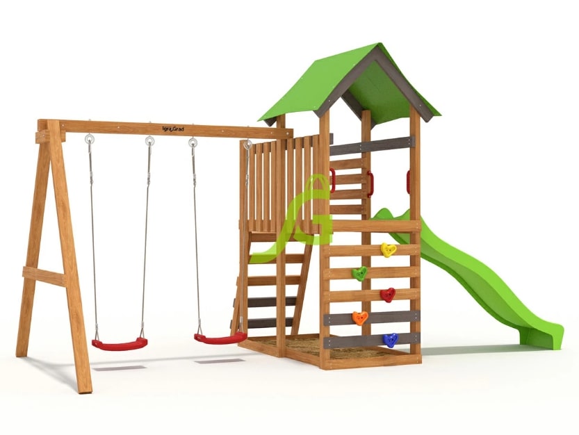 Горка, Домик (замок), Качели, Скалодром |