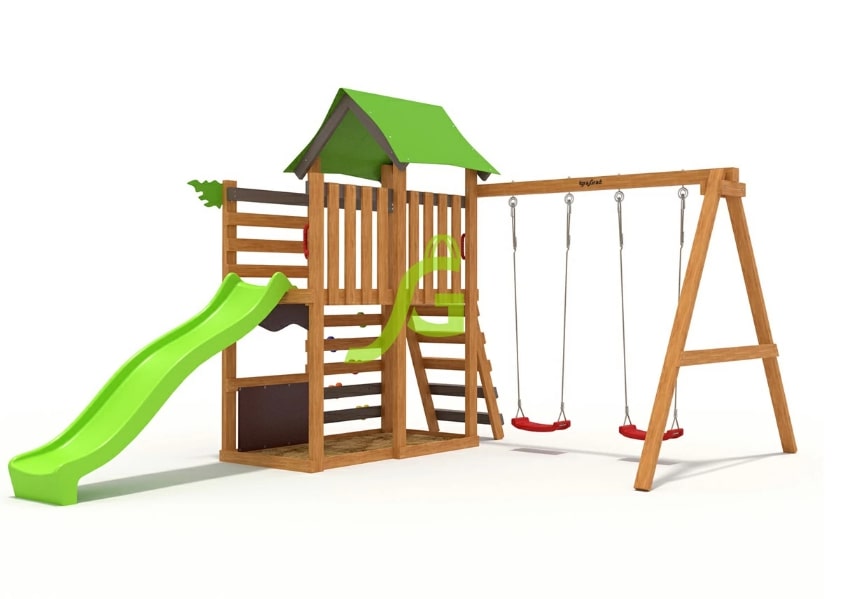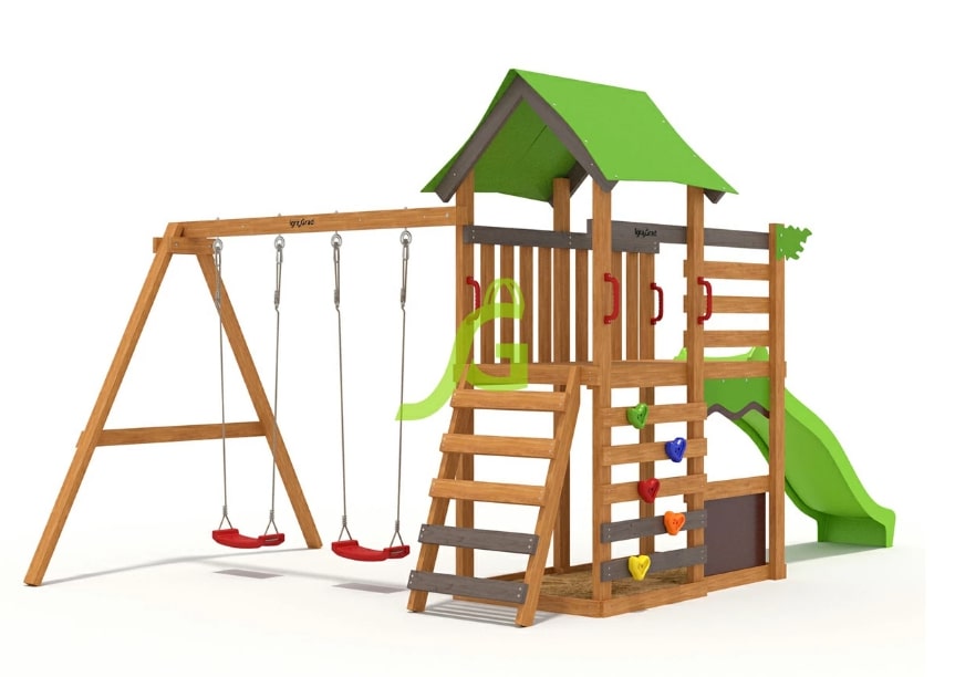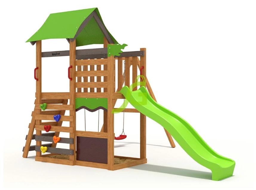 Детская площадка IgraGrad W7s — детская игровая площадка, которая подходит для семей с несколькими детьми разного возраста, а также для тех, кто желает приобрести спортивно-игровой комплекс на вырост.Игровая башня с горкой - идеальное универсальное средство для бесконечного веселья в Вашем саду. Igragrad ( ИграГрад) серии w с прочной ПВХ крышей дает Вашим детям возможность создать игровую зону. Благодаря встроенной песочнице Ваши дети смогут раскрыть свой творческий потенциал и превратить ее в пекарню для песочных фигур со своими друзьями. На платформу, защищенную прочной ПВХ крышей, можно попасть по двум лестницам. Встроенное подключение к воде в нашей волновой пластиковой горке обеспечивает дополнительный элемент экстрима. Наши высококачественные аксессуары и двойные качели подарят новые захватывающие игры Вашим детям. В комплексе также имеется скалодром для лазания на башню.