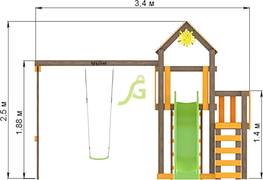 - Длина качельной балки: 1,88 м