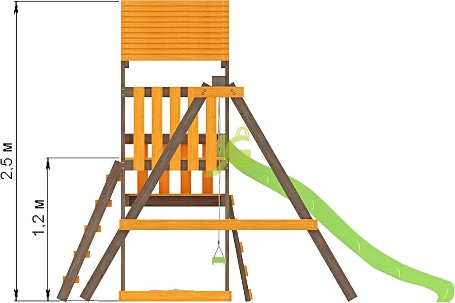 - Под вторым уровнем домика может располагаться песочница.