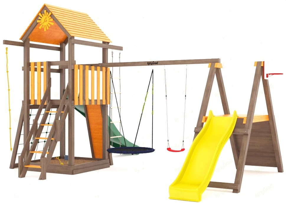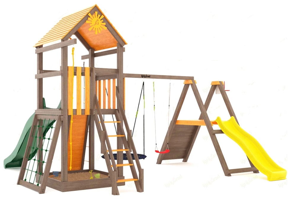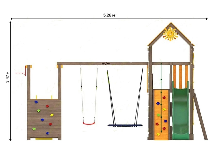 Внешний вид и конструкция элементов детской площадки могут незначительно отличаться от изображений на сайте в связи с возможными доработками со стороны производителя, направленными на повышение качества и безопасности продукции.